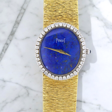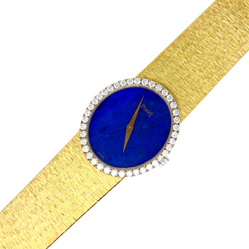 Overview A timeless and elegant 18K yellow gold vintage Piaget ladies wristwatch with a diamond...