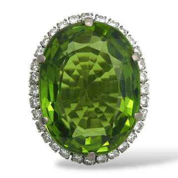 GIA Certified Natural Peridot 30 CT Halo Diamond Ring 14K White Gold Size 6.25 Metal...