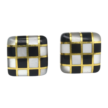 ANGELA CUMMINGS Checkerboard Cufflinks 18K Yellow Gold Black Jade & White Nacre Brand Angela Cummings...