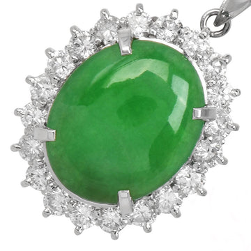 Set: Ring and Clip-On Earrings Gemstones: Green Natural Jade; Natural White Diamonds Ring: Metal: PlatinumSize:...