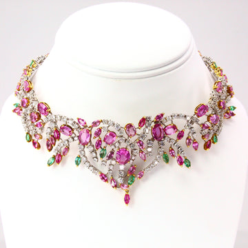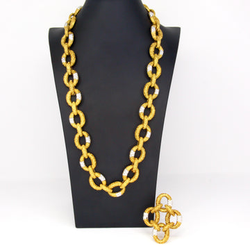 Metal 18K Yellow Gold; Platinum Weight Necklace/Bracelets: 267.5 gramsBrooch: 47.2 gramsTotal: 314.7 grams Measurements Necklace...