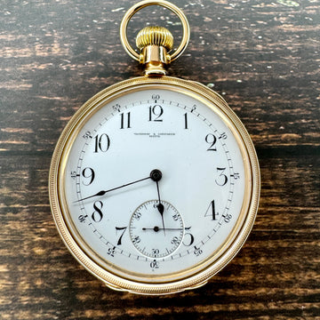 Overview An elegant and antique 18K yellow gold Patek Philippe pocket watch, measuring 45mm wide...