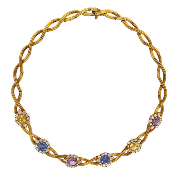 Herbert Rosenthal Ceylon No Heat Sapphire Multi-Color Diamond Necklace 18K Gold Brand Herbert Rosenthal Metal...