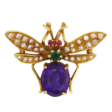 Insect Bug Diamond Amethyst Emerald Ruby Brooch Pin 0.50 CT 18K Yellow Gold Gemstones Type:...