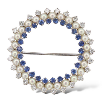 Pearl Sapphire Brooch Natural Diamonds Open Center Pin 14K White Gold Materials Natural Earth Mined...
