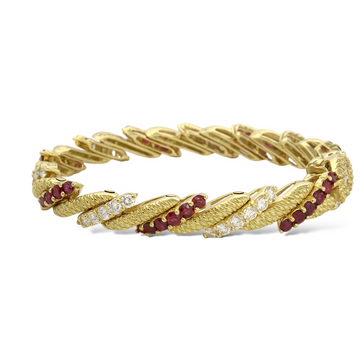 Hammerman Brothers Ruby 5 ct Diamond 3.70 ct Bracelet 18K Yellow Gold 7 Inches Brand...