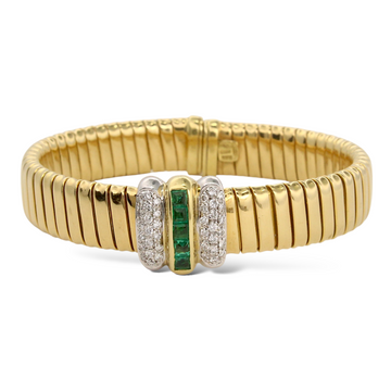Diamond Ladies Green Natural Emerald 0.50 CT Cuff Bracelet 18K Yellow Gold Metal Type: 18K...