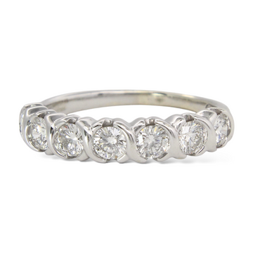 Anniversary 7 Stone Band 1 CT Diamond Round Cut 14K White Gold Ring Metal Type:...