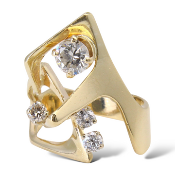Abstract Avant Garde Brutalist Diamond Ring 0.85 CT 14K Yellow Gold Size 7 Metal Type:...