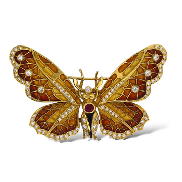 Butterfly Natural Diamond 0.80 CT Red Ruby Enamel Brooch Pin 18K Yellow Gold Materials 18K...