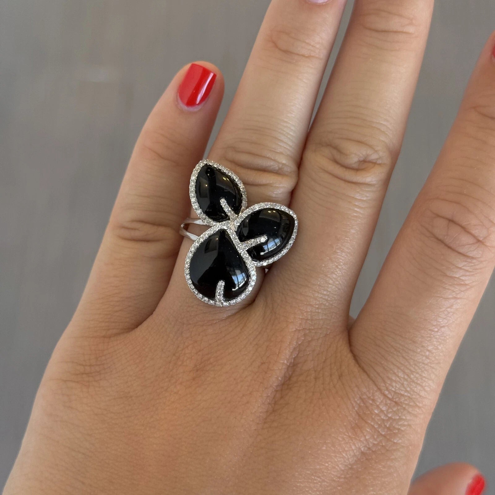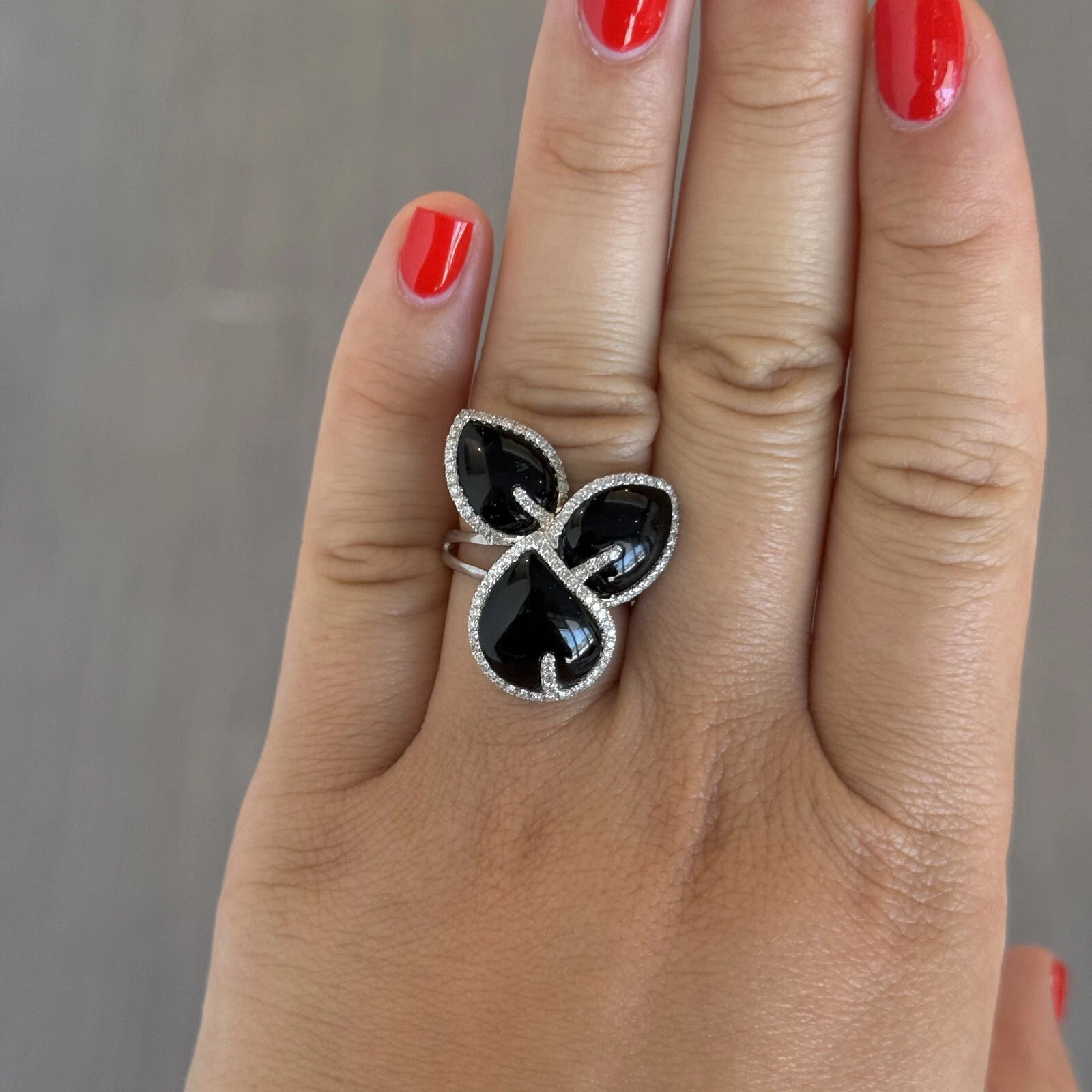 0.60CT Pavé Diamond and Black Onyx 18K White Gold Size 7