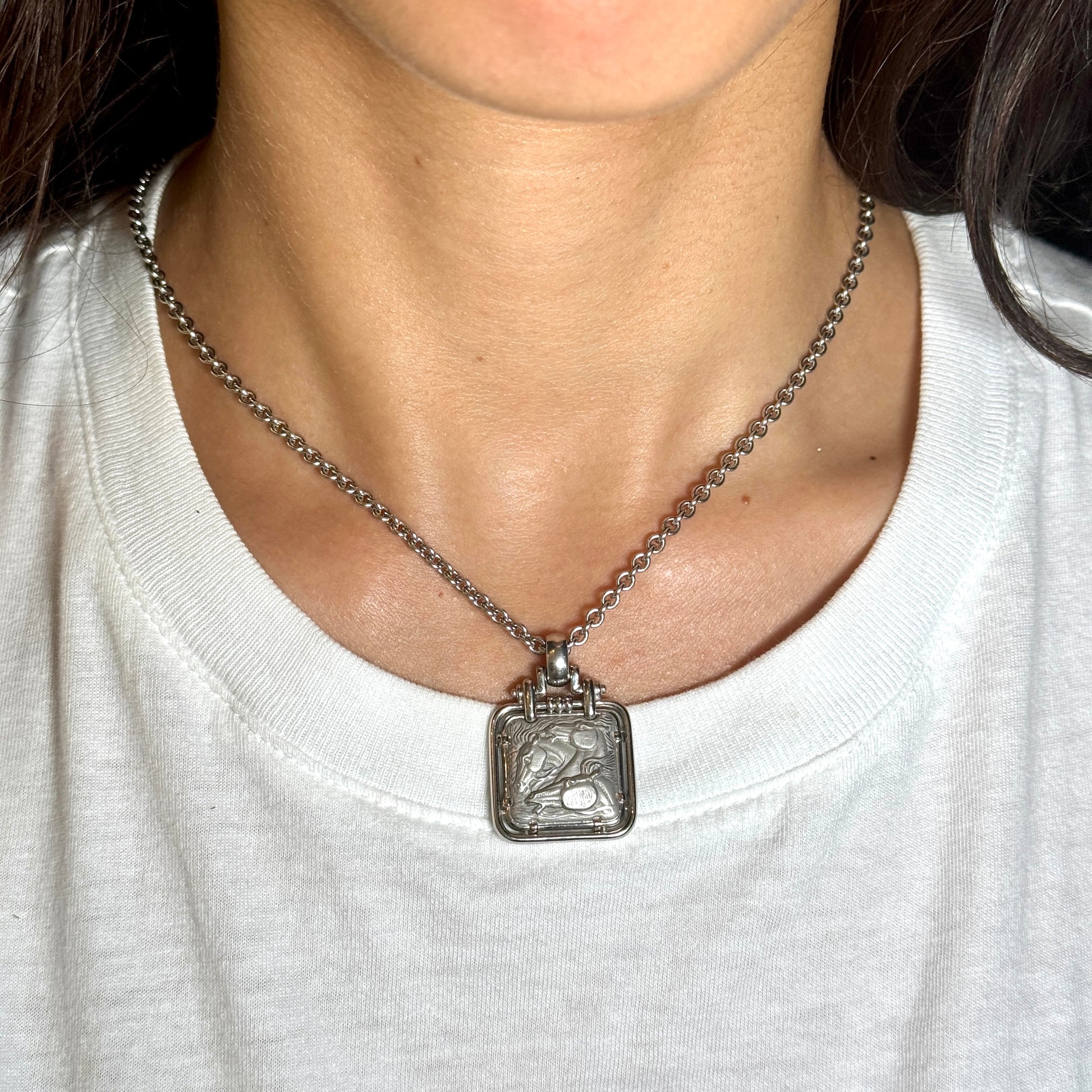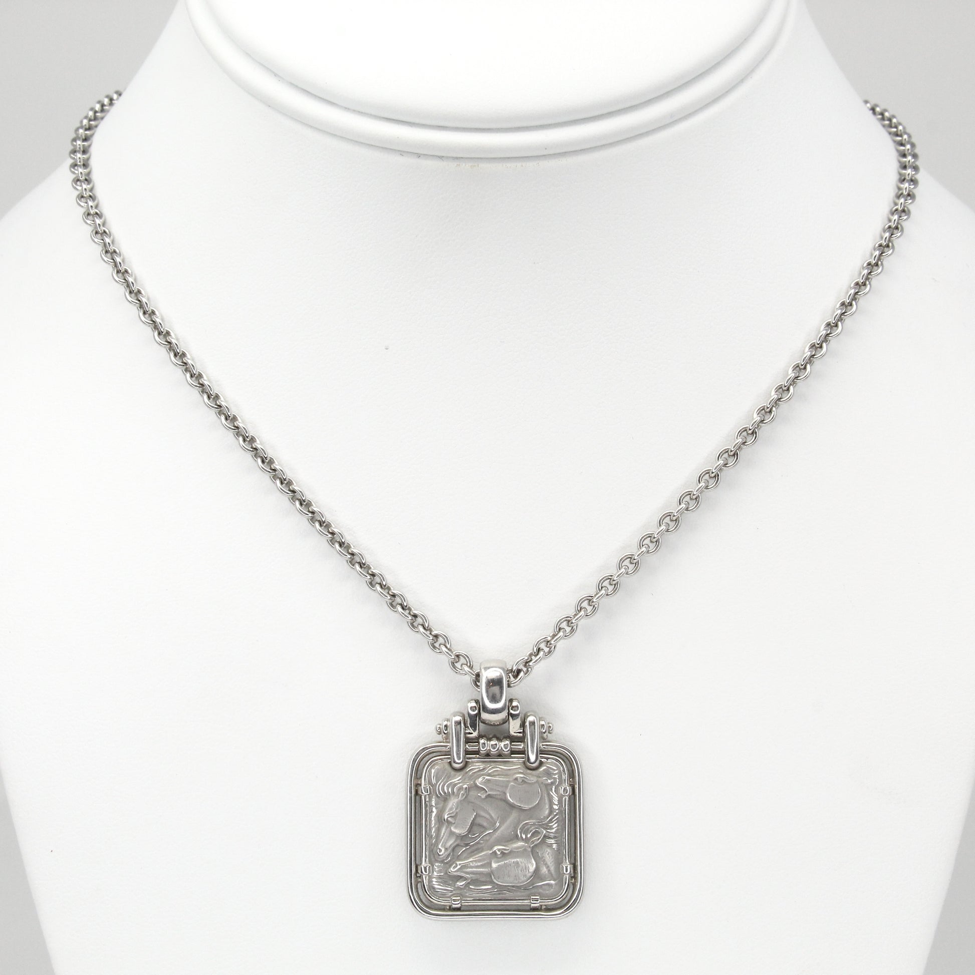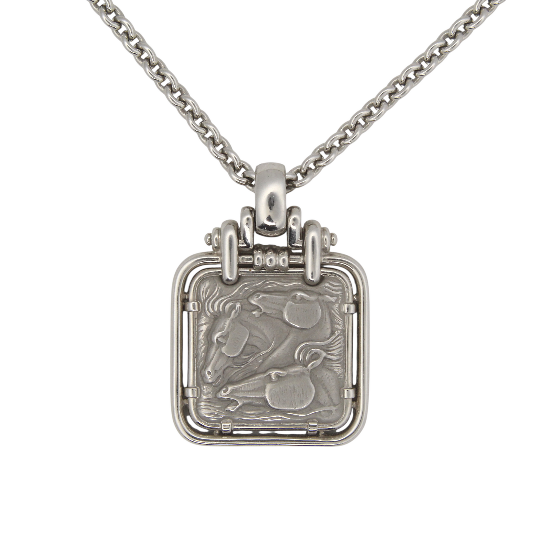 CARRERA Y CARRERA Horse & Rider Pendant Necklace 18K White Gold 20 Inches