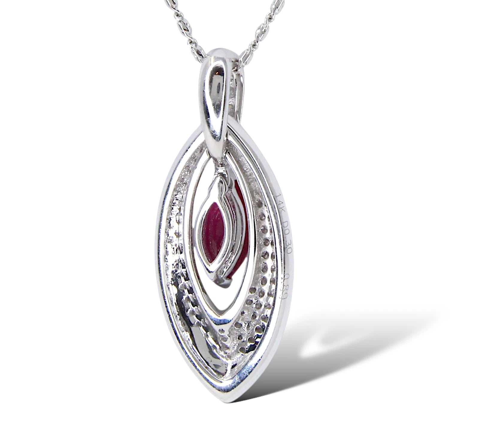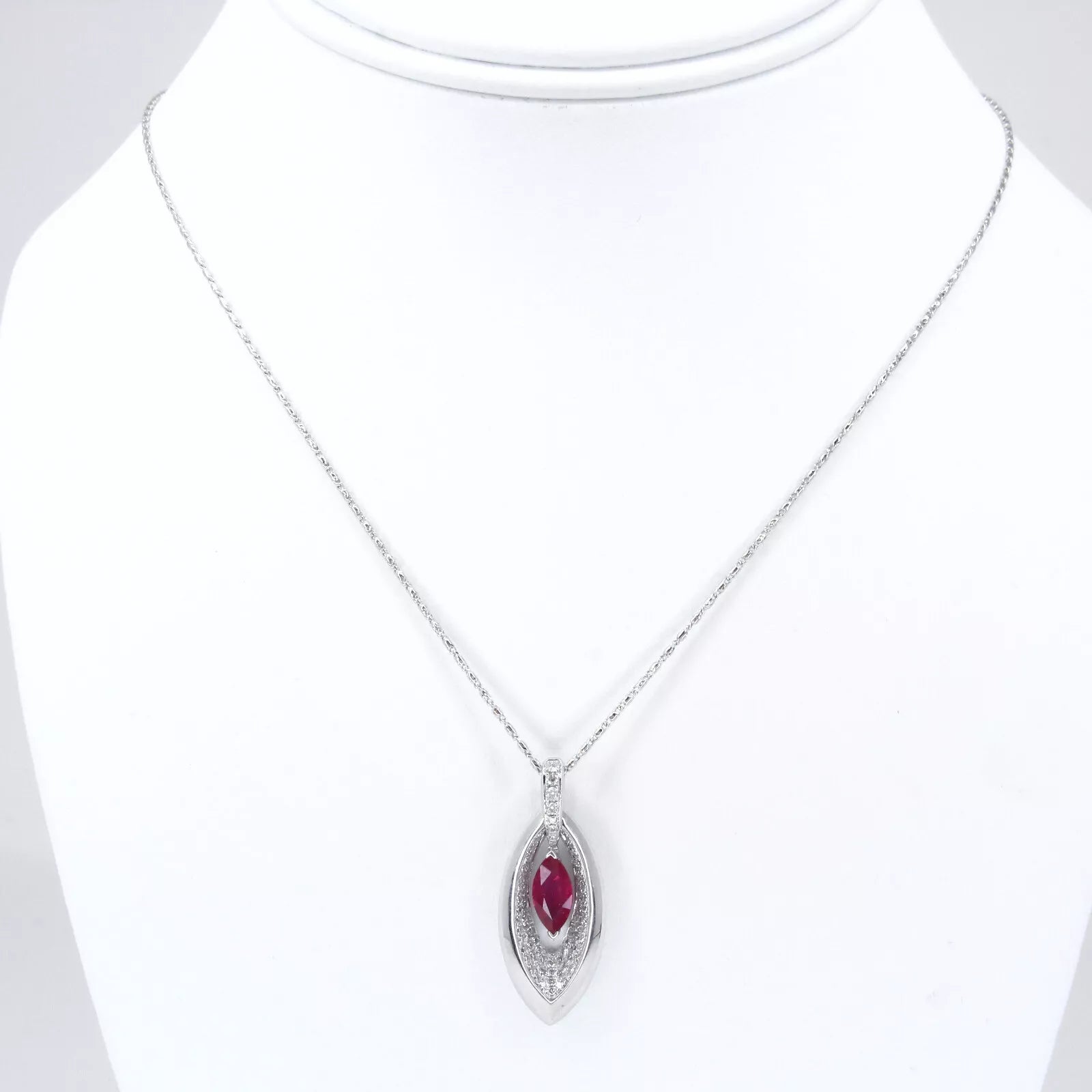 0.89 CT Ruby and Diamond 0.30 CT Pendant Necklace 14K White Gold