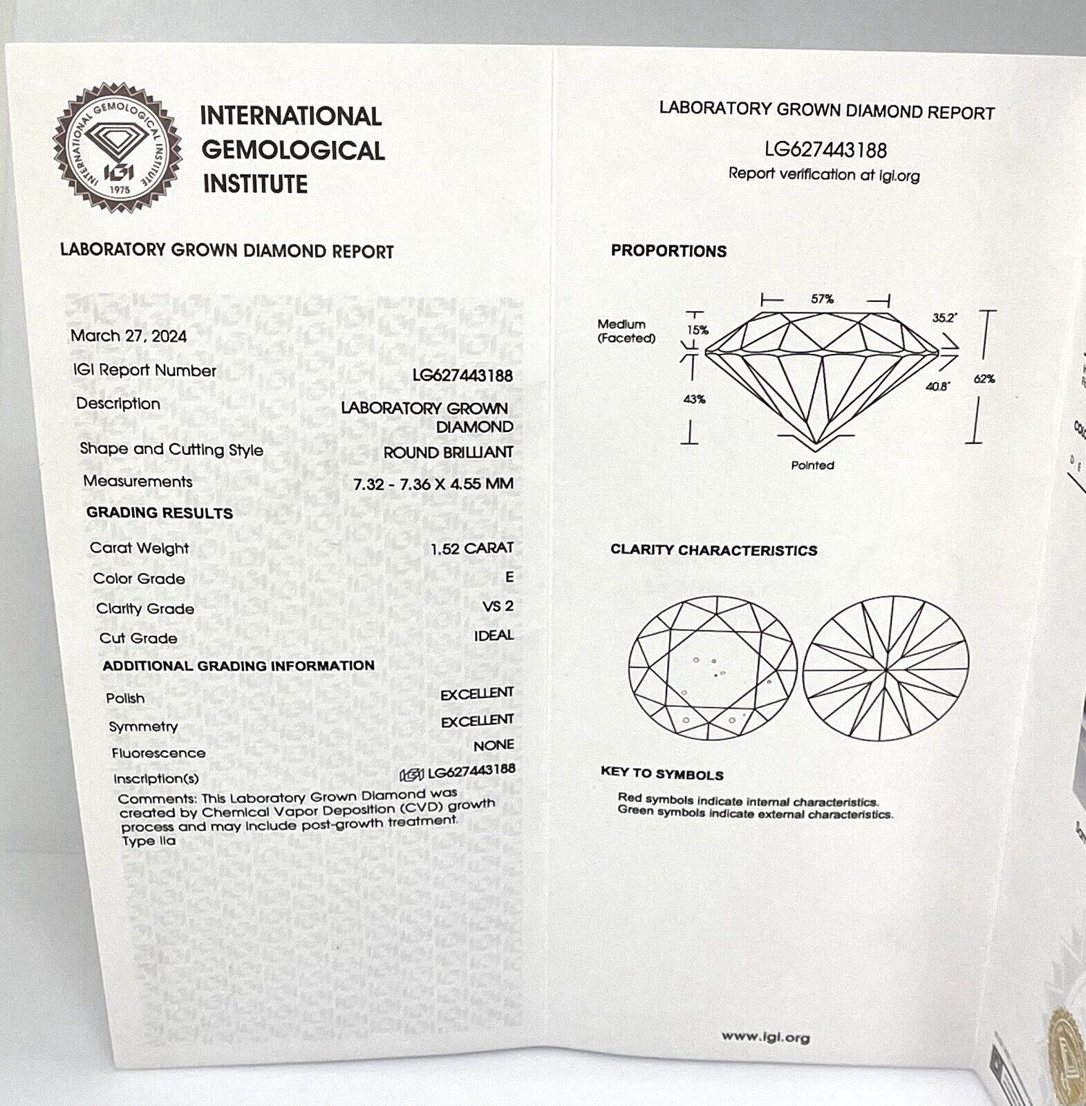 Lab grown diamond is IGI CERTIFIED as shown in photos