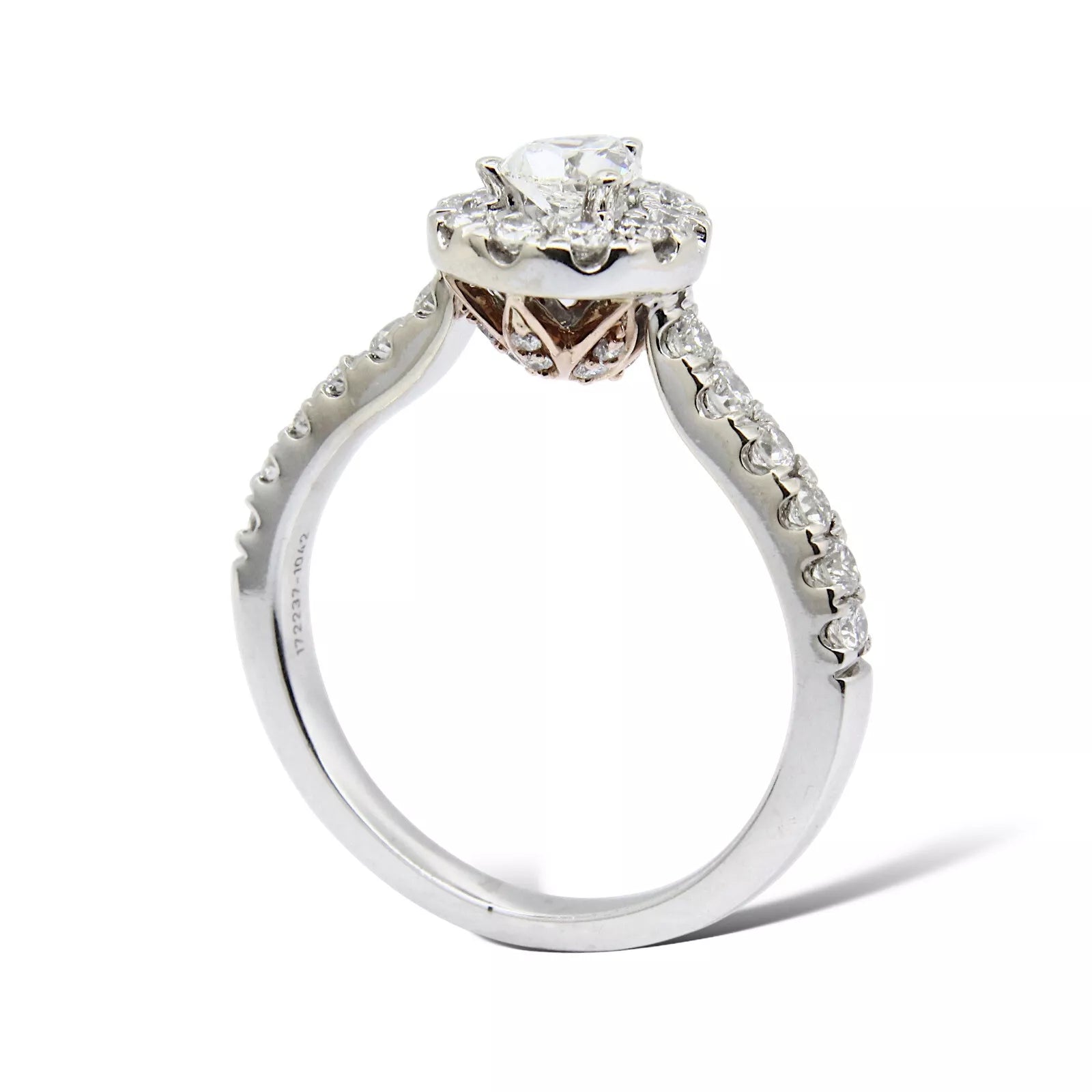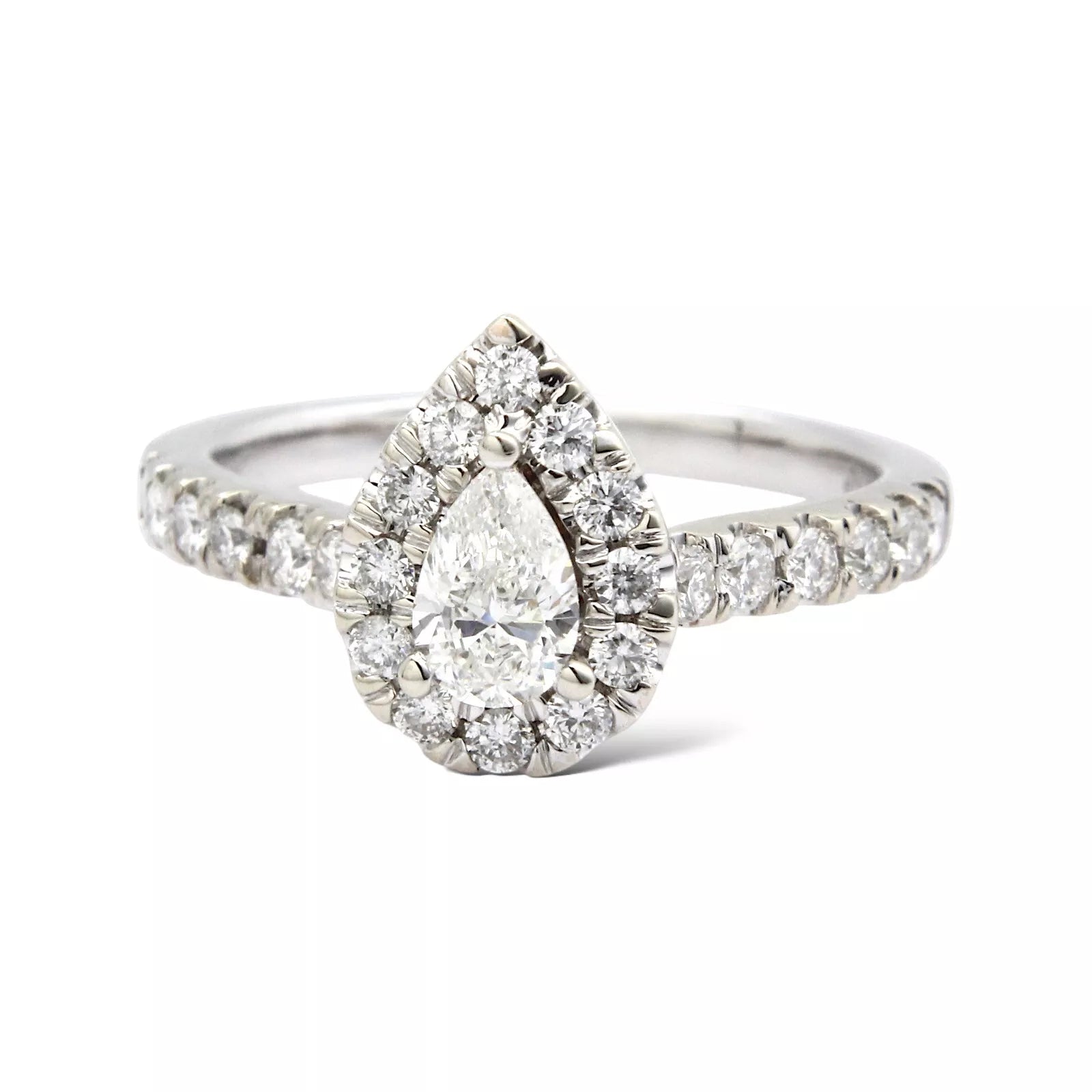 1 CTW Pear Cut Natural Diamond Engagement 14K Halo Round Brilliant Ring