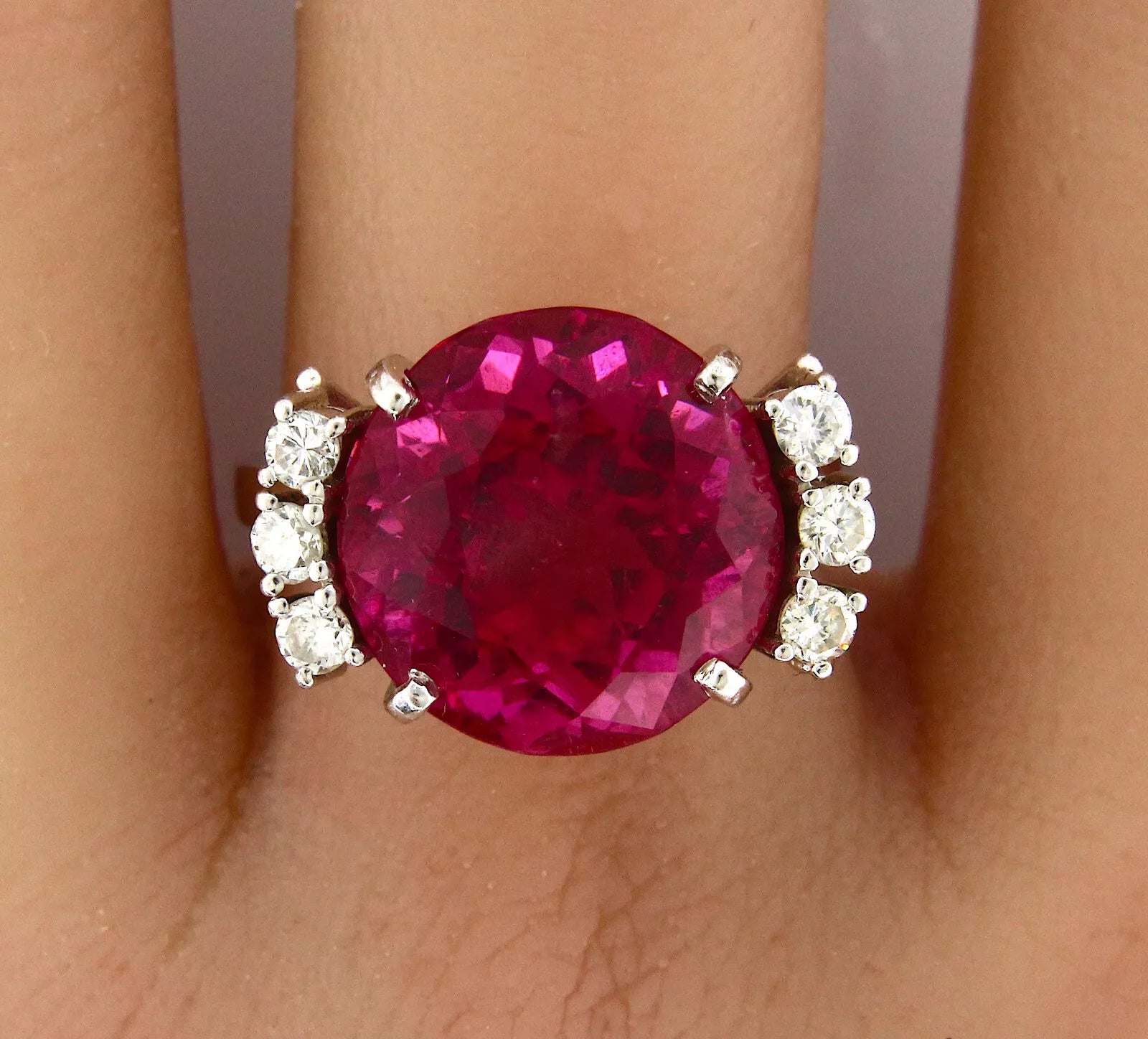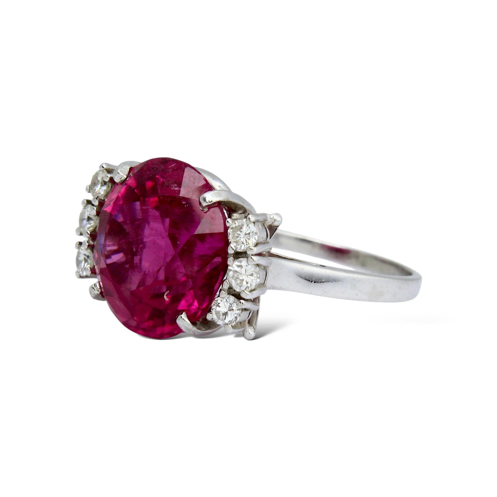 10.91 CT Pink Tourmaline and Diamond Platinum Ring Natural GIA Certified