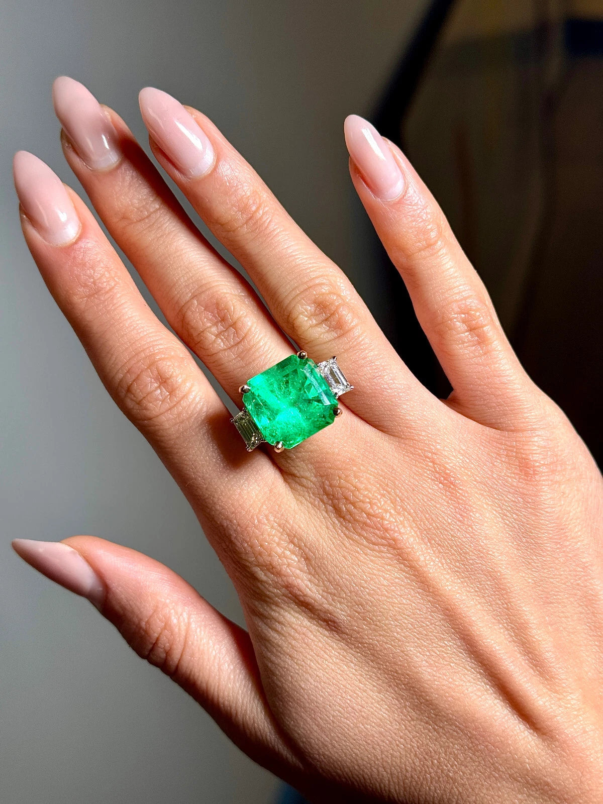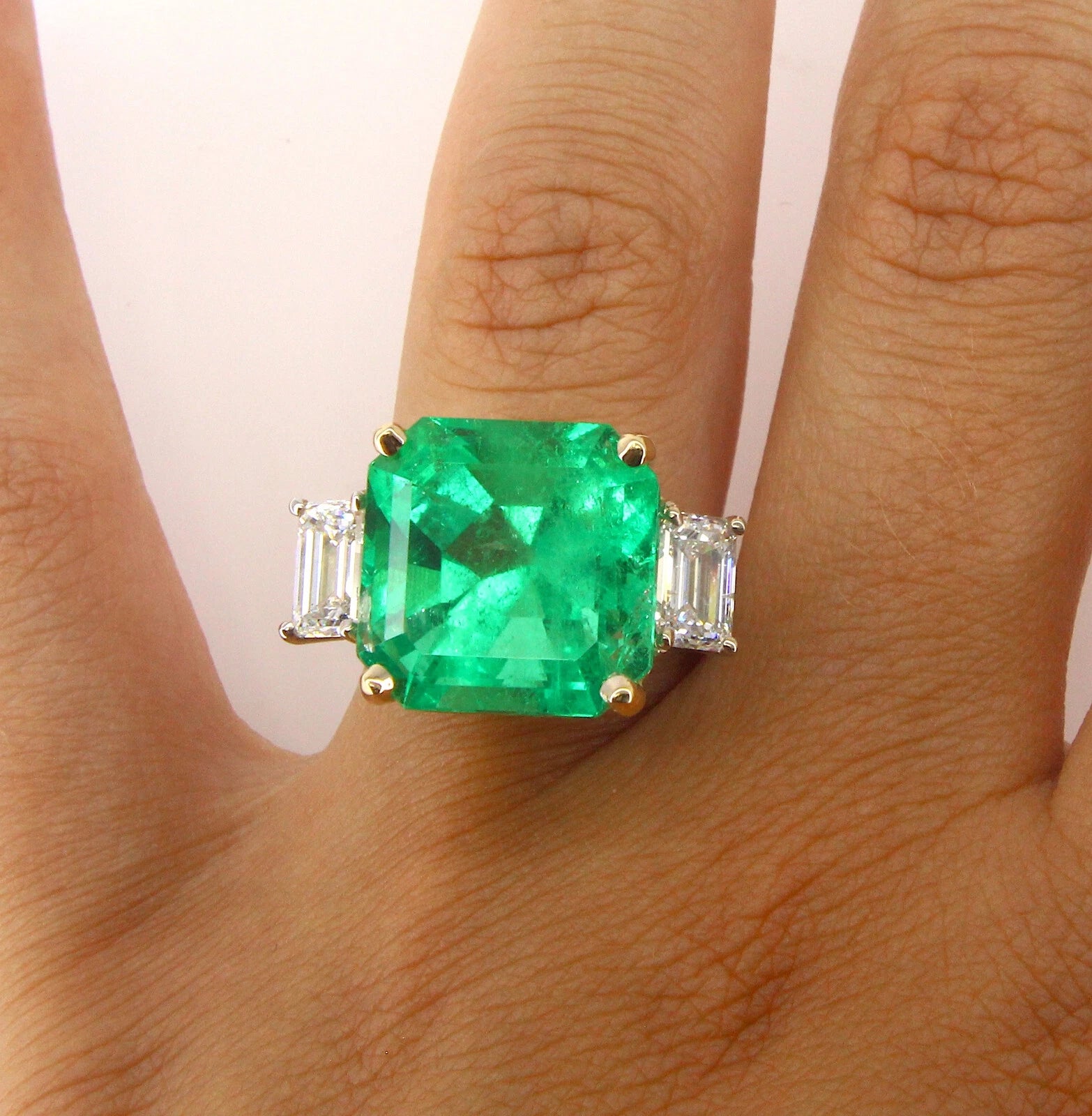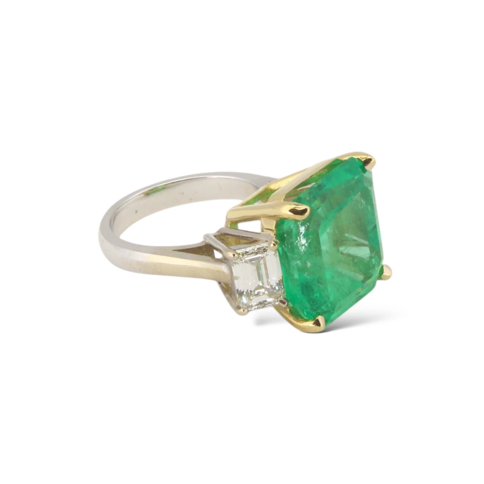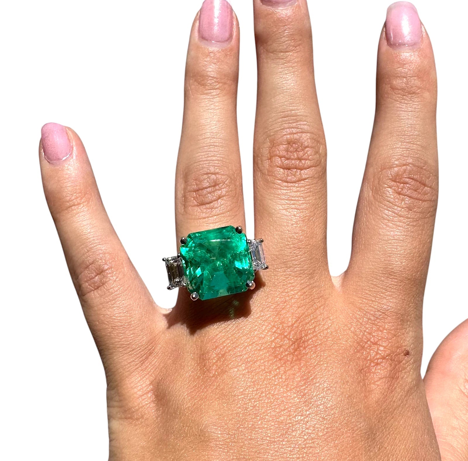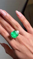 14.49 CT Green Emerald Colombian GIA Certified Diamond Ring 18K White Gold