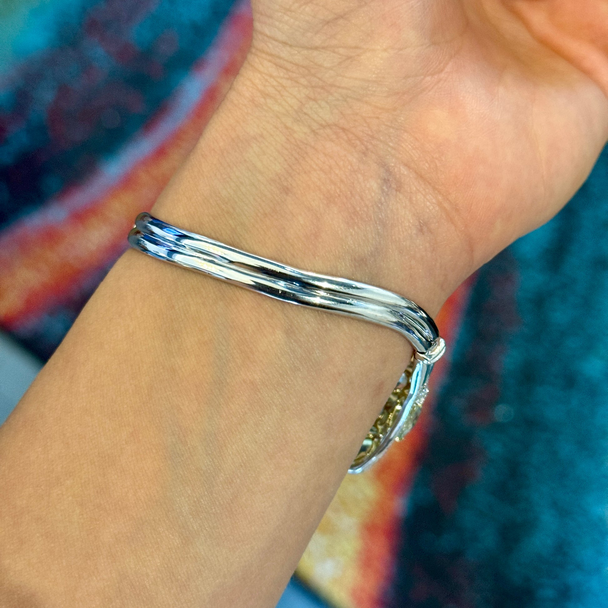 40 CT Diamonds, Orange Green and Pink Sapphires Wide Bangle 18K White Gold