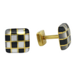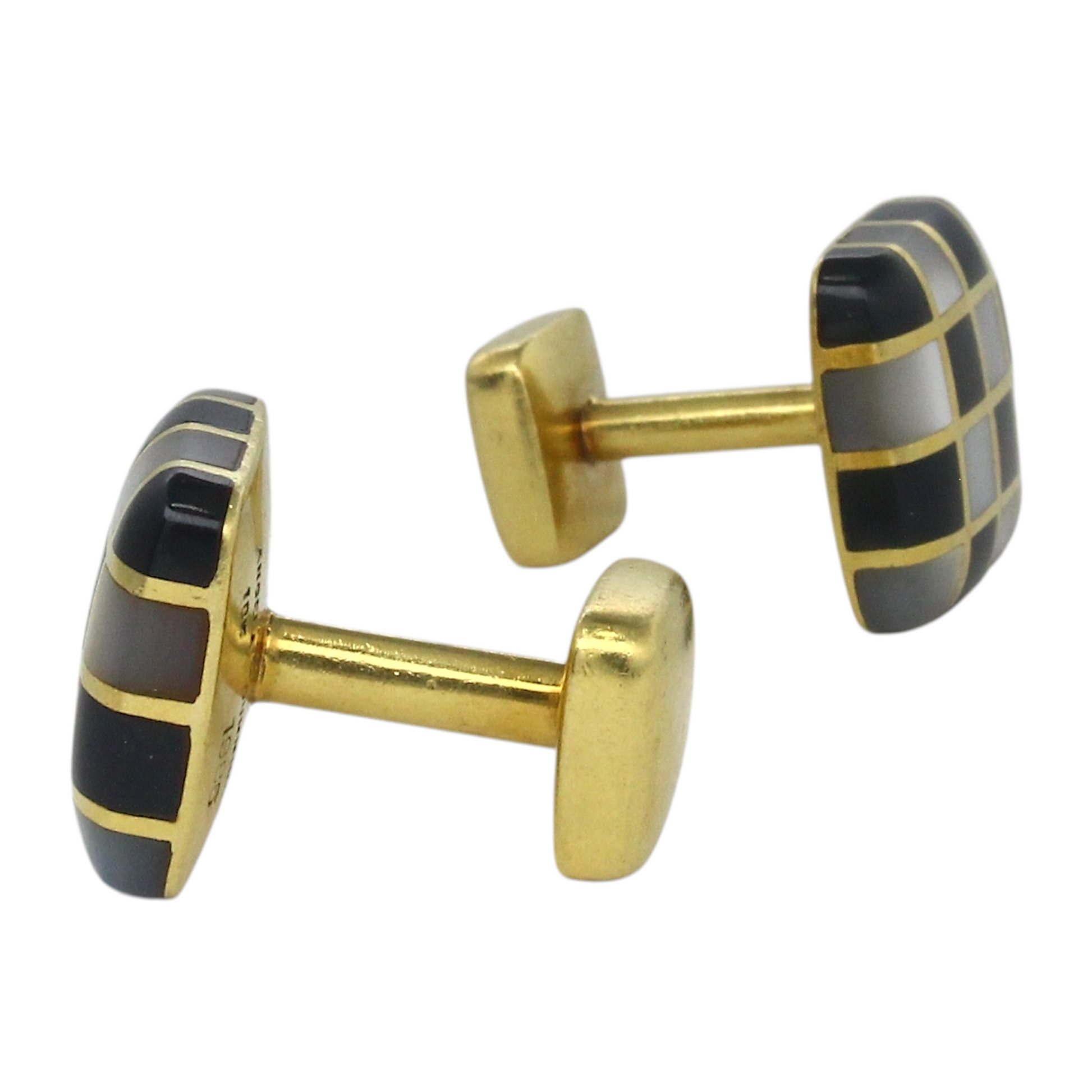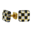 ANGELA CUMMINGS Checkerboard Cufflinks 18K Yellow Gold Black Jade & White Nacre