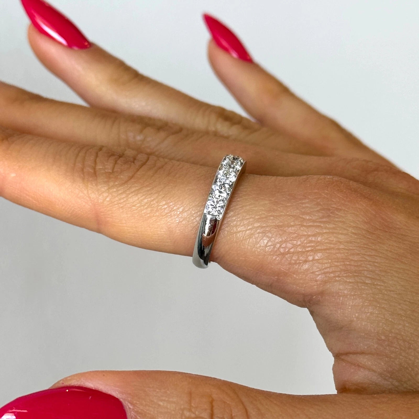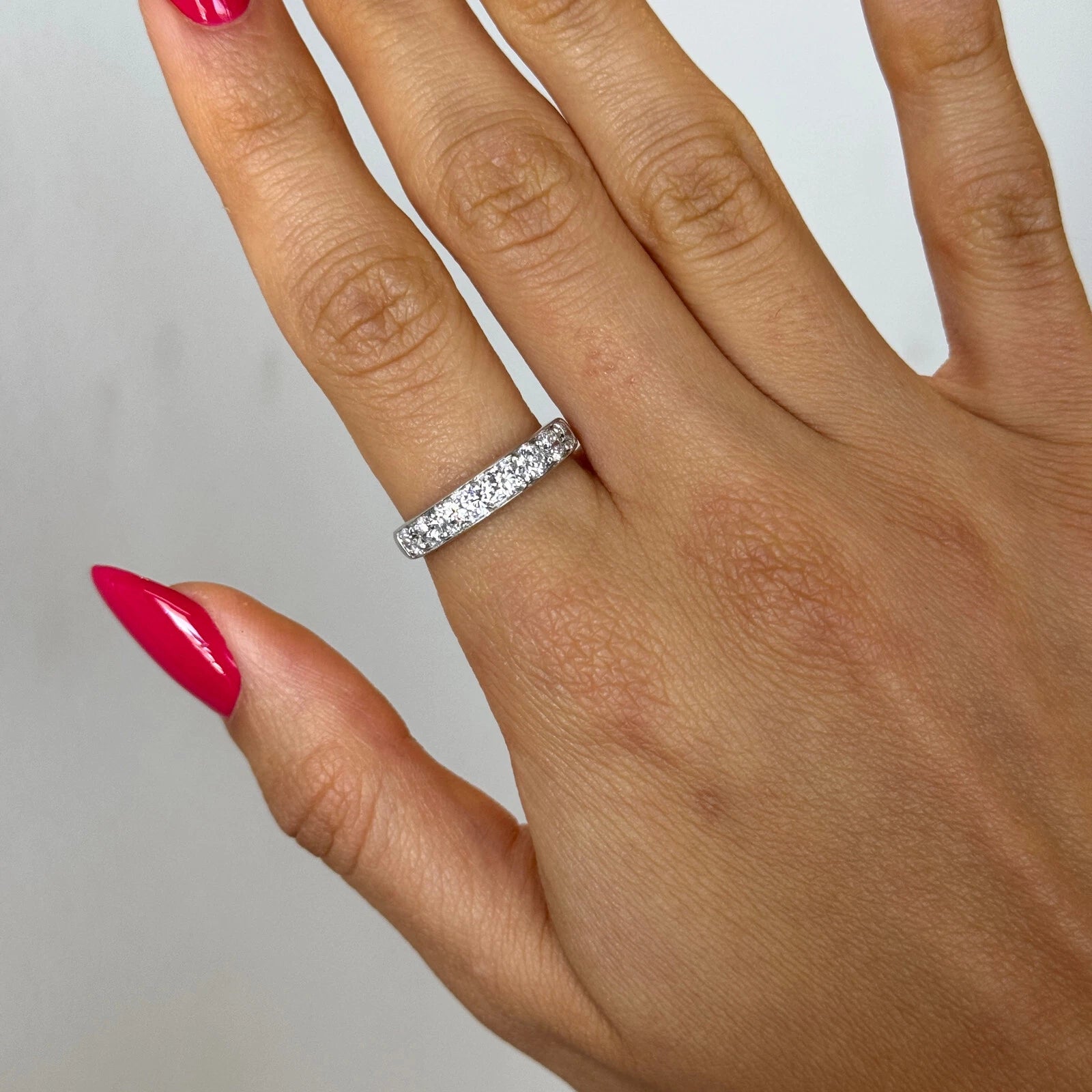 Anniversary Band 1CT Round Brilliant Cut 8 Diamonds 18K White Gold Ring