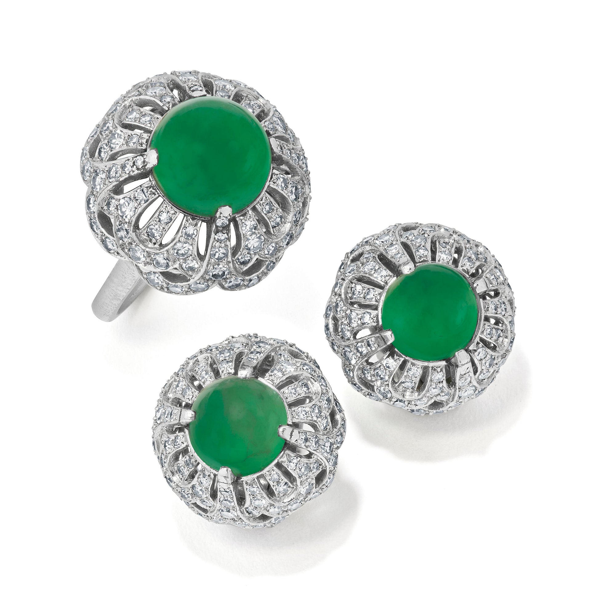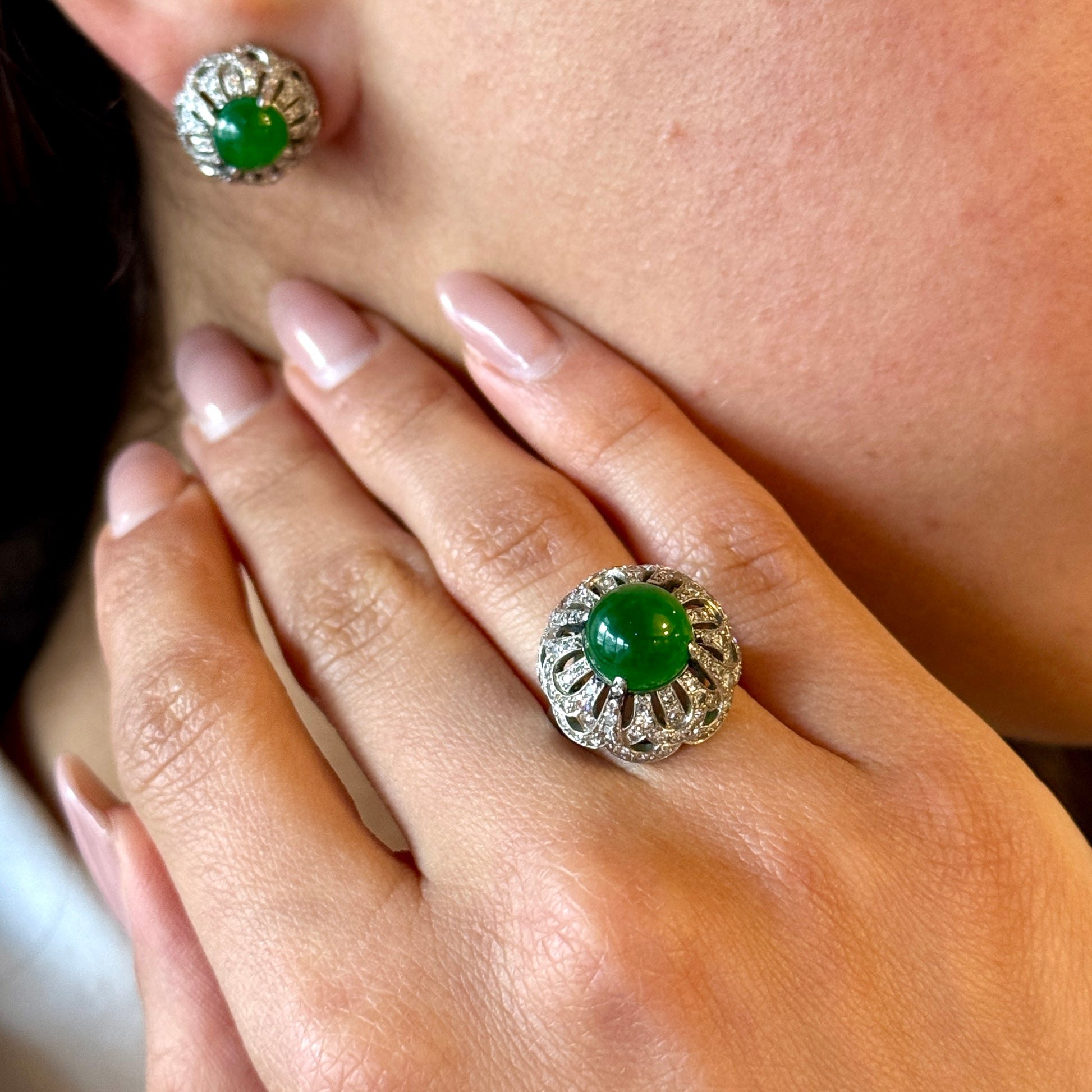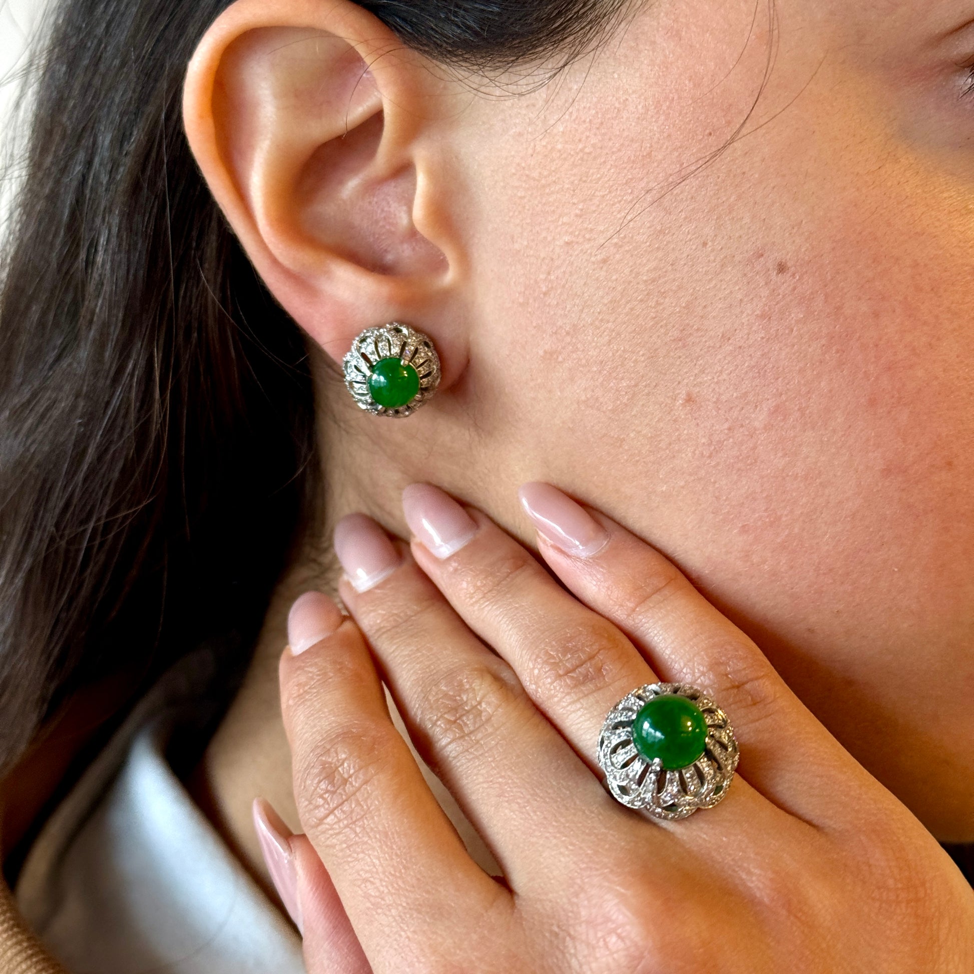 Antique Jade Jewelry Set – Platinum & Diamond Floral Ring and Earring