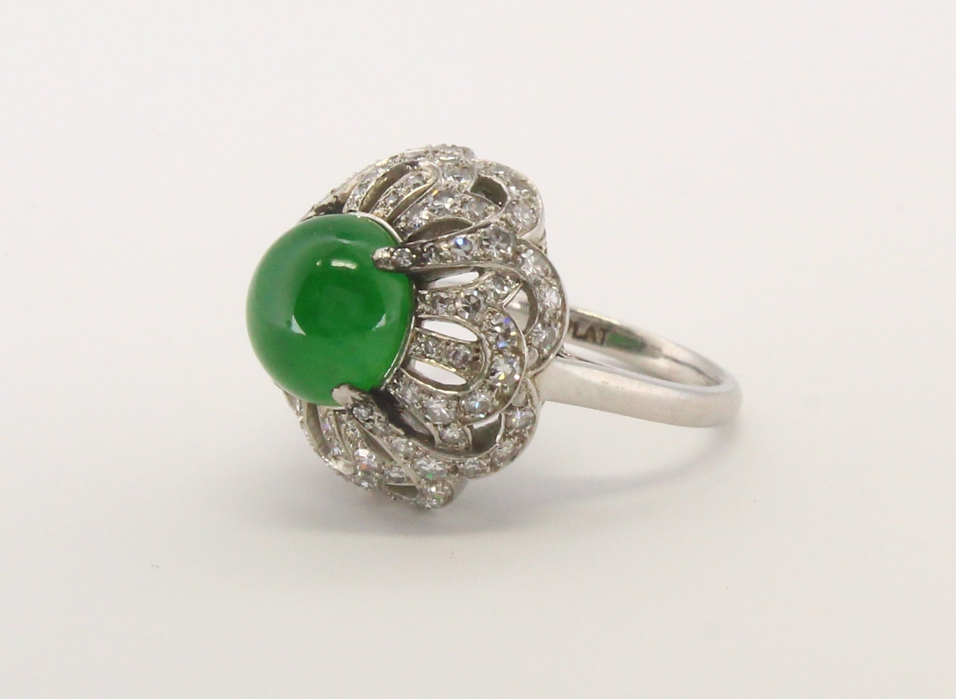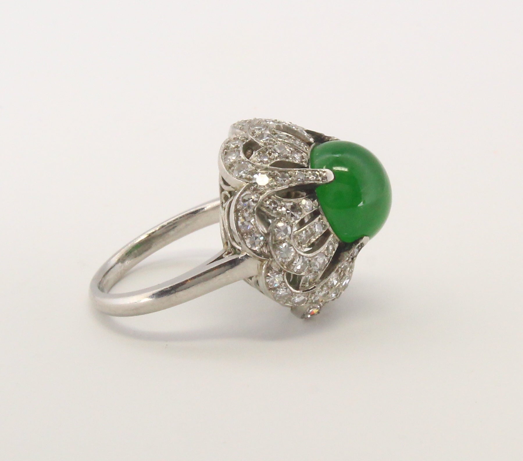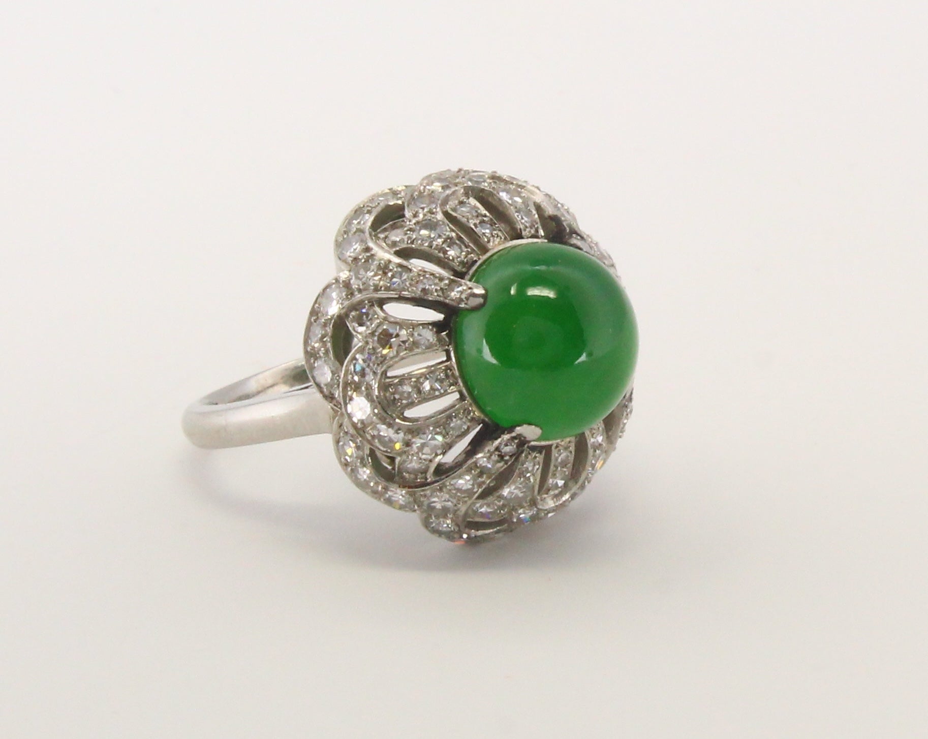 Antique Jade Jewelry Set – Platinum & Diamond Floral Ring and Earring