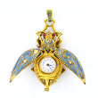 Antique Victorian Scarab Enamel Watch Lapel 18K Yellow Gold Diamond Ruby