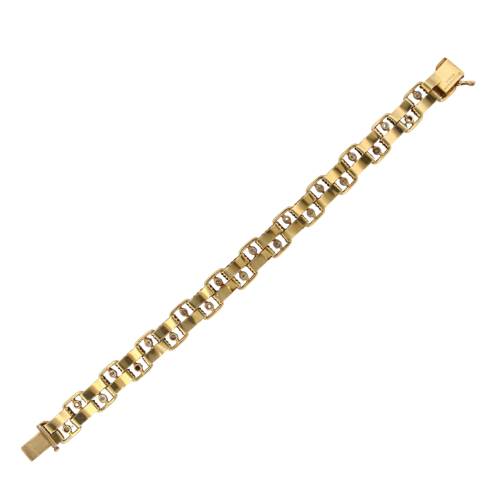 1950s Boucheron Paris 18K Yellow Gold and Platinum Diamond Bracelet