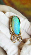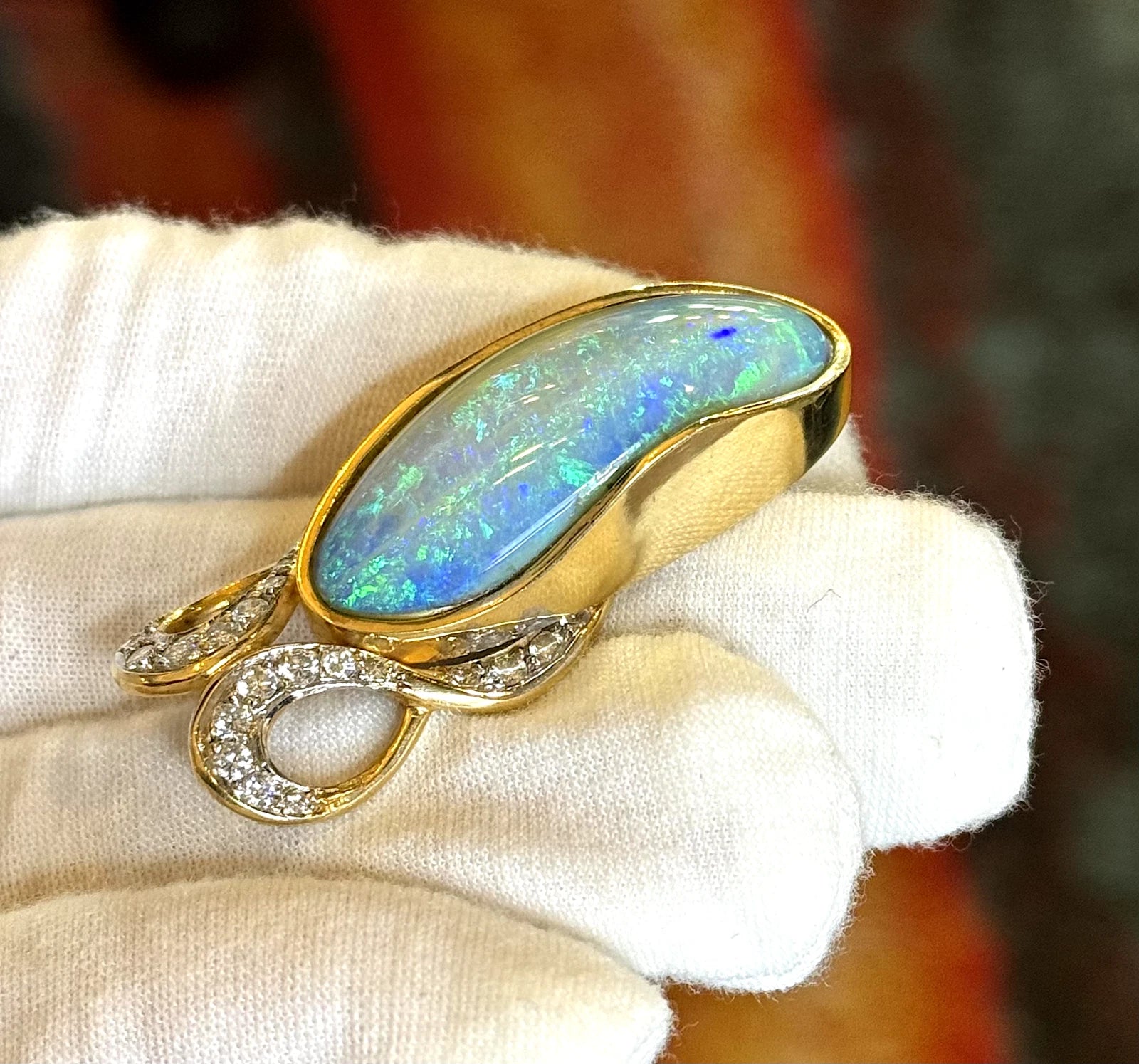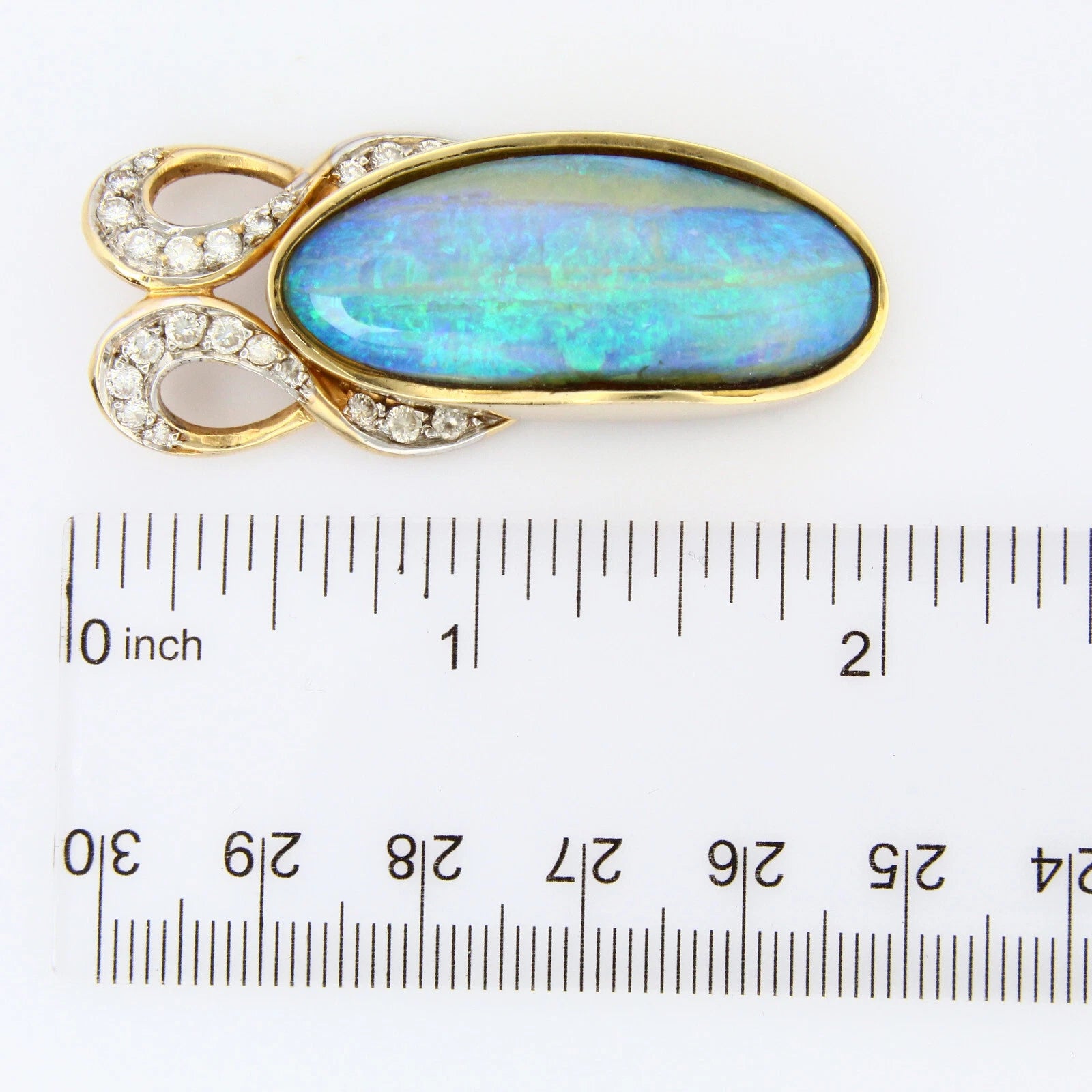 Boulder Opal Vintage Pendant and Natural White Diamonds 0.90 CT 14K Yellow Gold