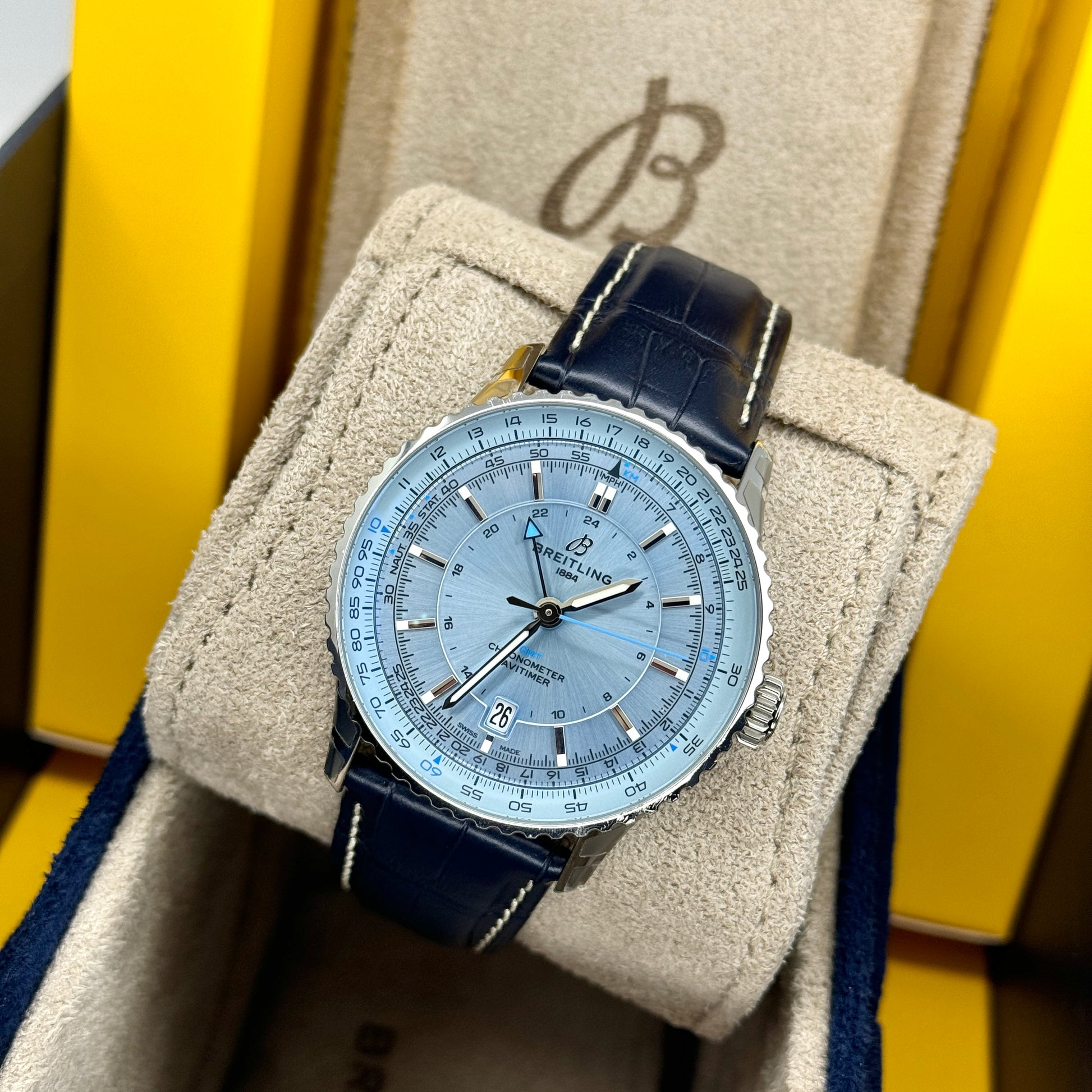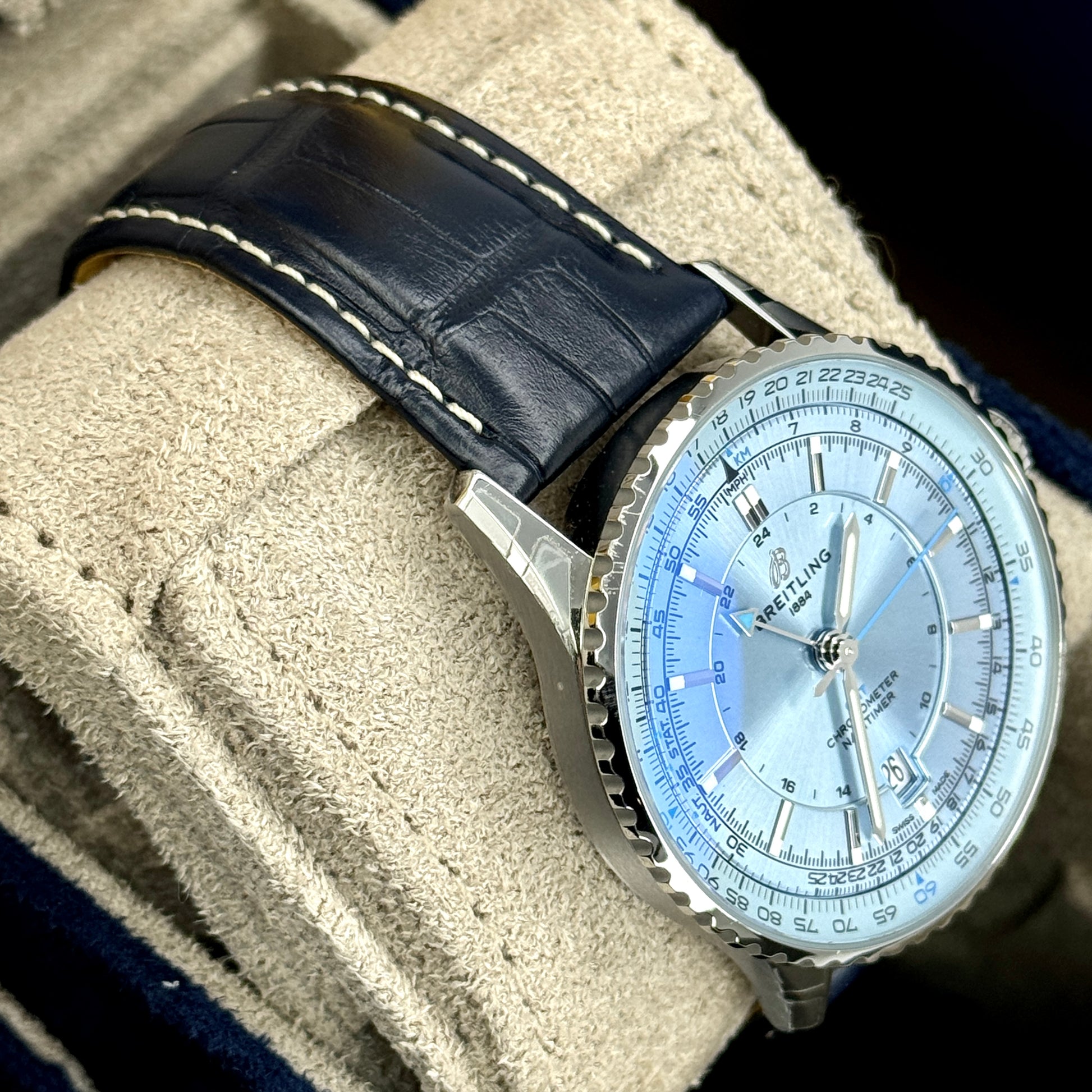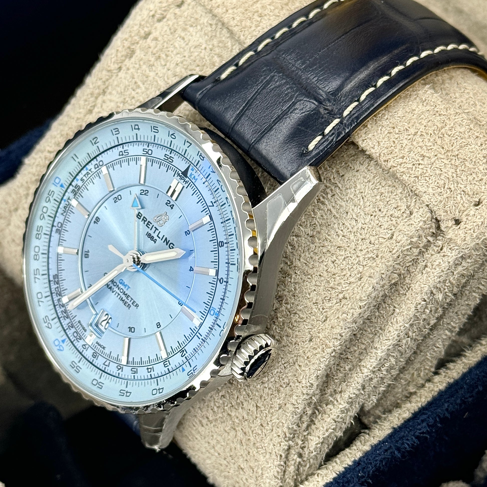 Breitling Navitimer GMT Automatic 41 Sunburst Ice Blue Dial Leather Band