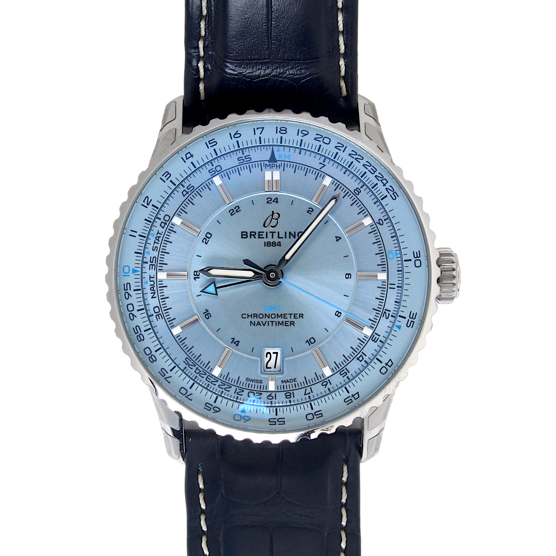 Breitling Navitimer GMT Automatic Gmt 41 Sunburst Ice Blue Dial Leather Band