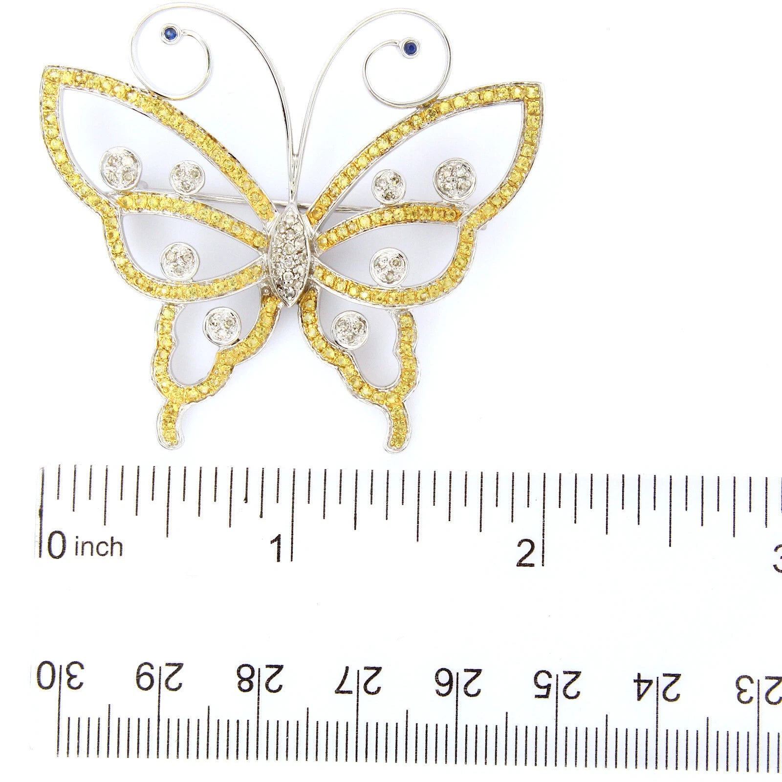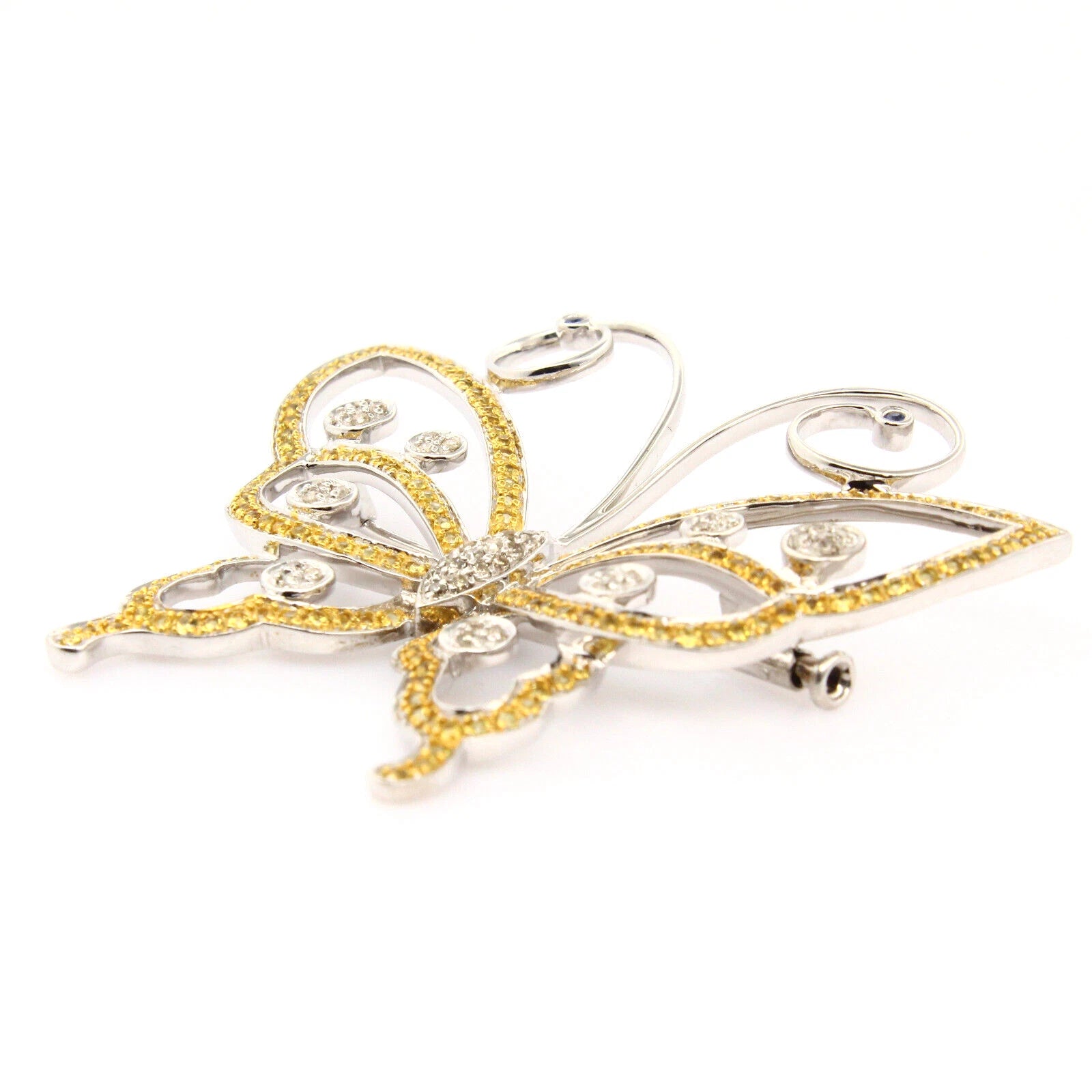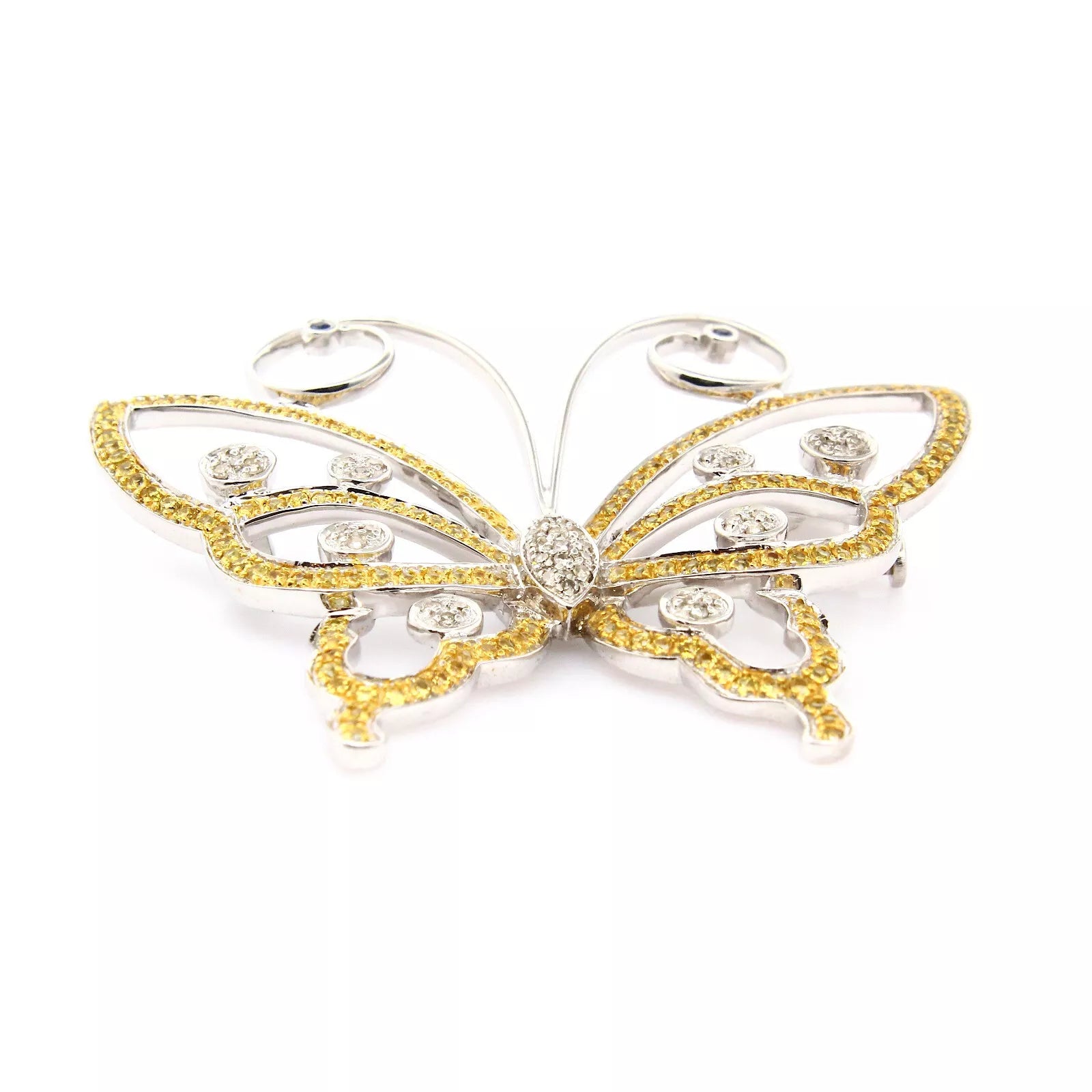 Butterfly Brooch Natural Diamonds 0.25 CT and Yellow Gemstones 14K Yellow Gold