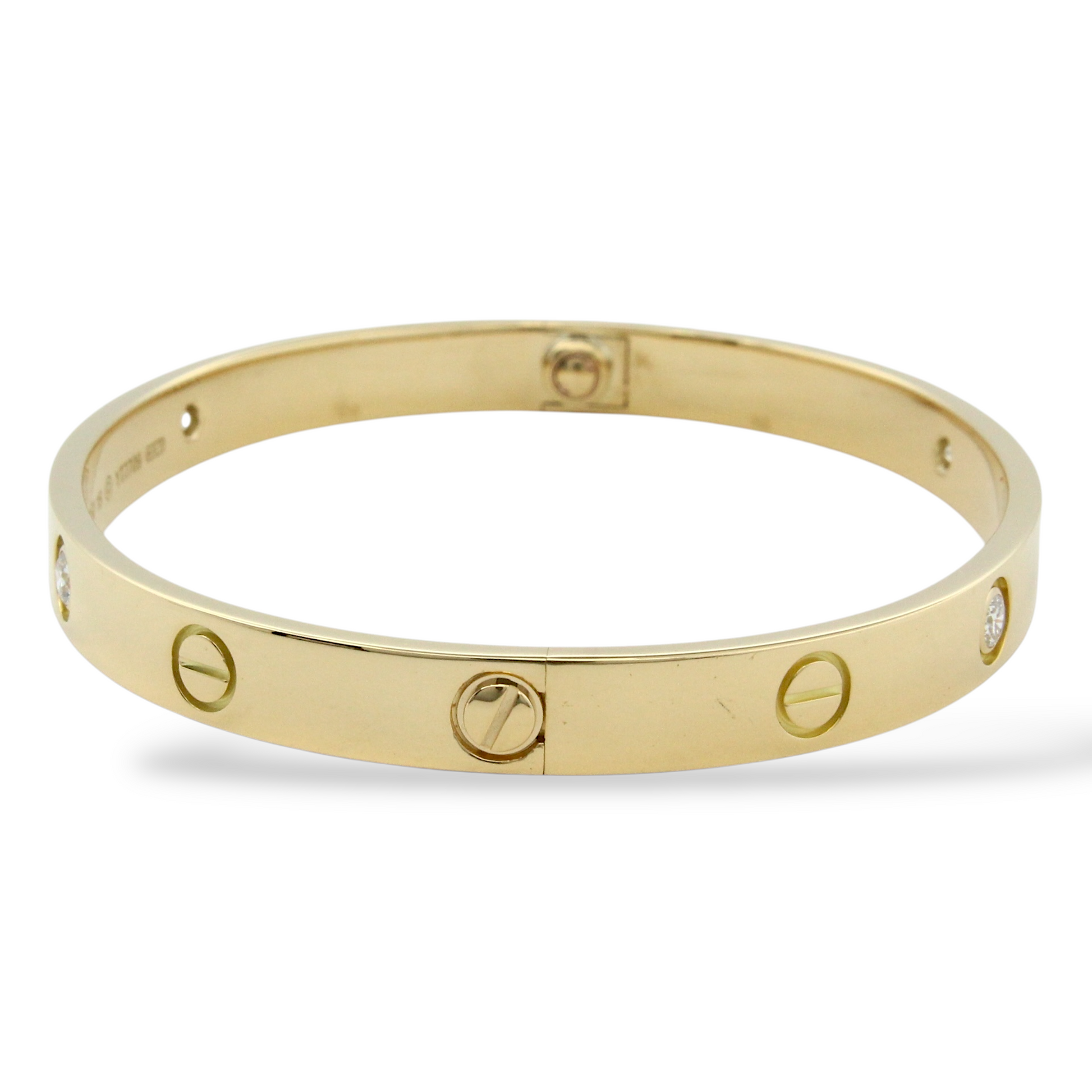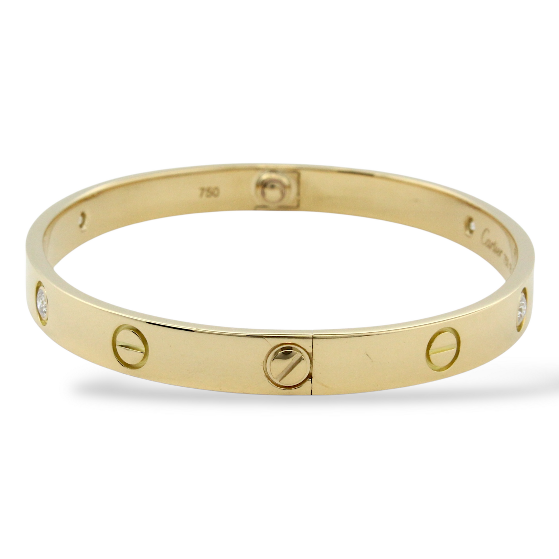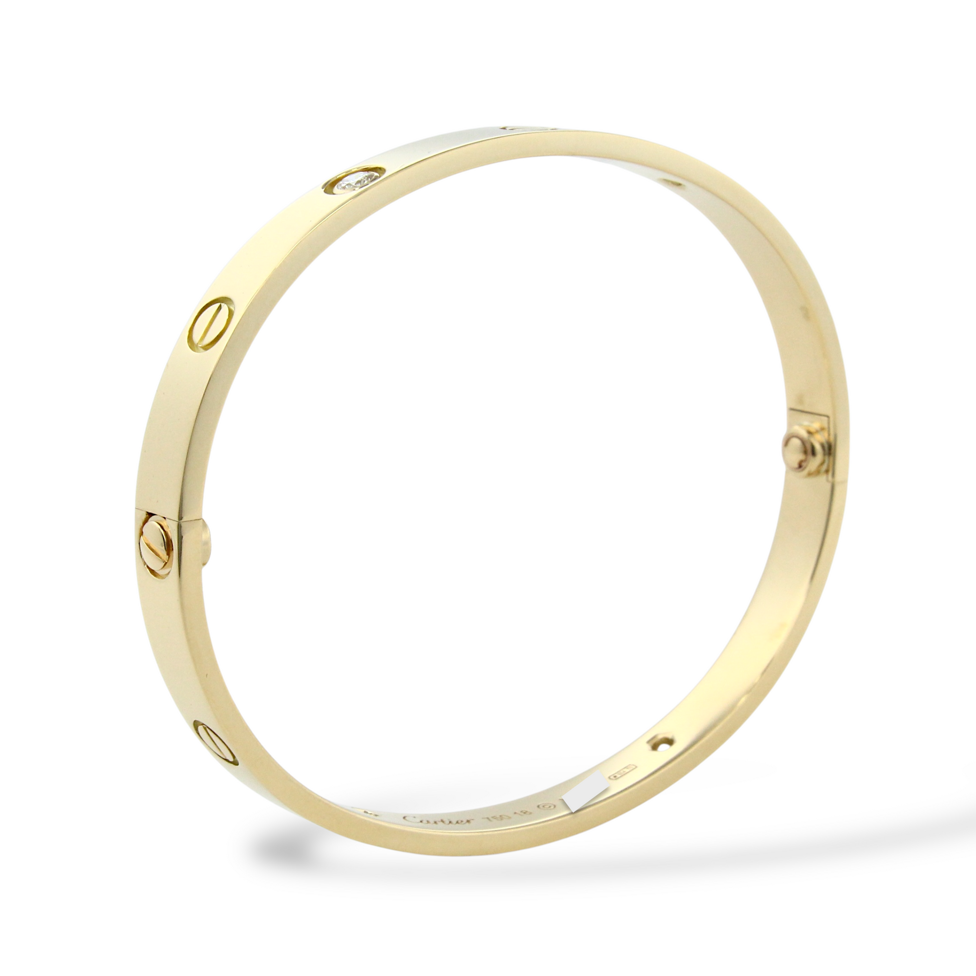 CARTIER Love 4 Diamonds Classic Bangle 18K Yellow Gold Size 18 Paper and Pouch