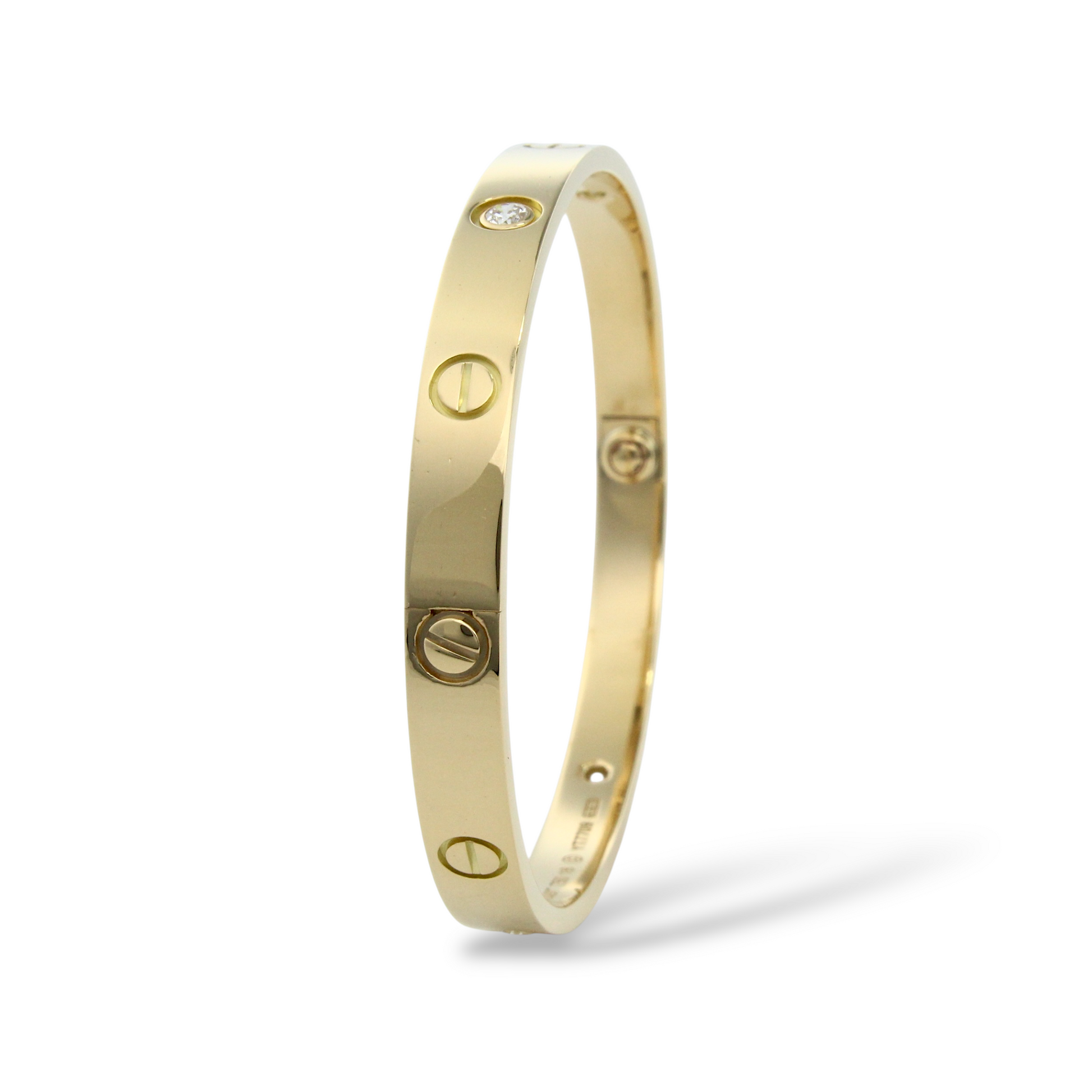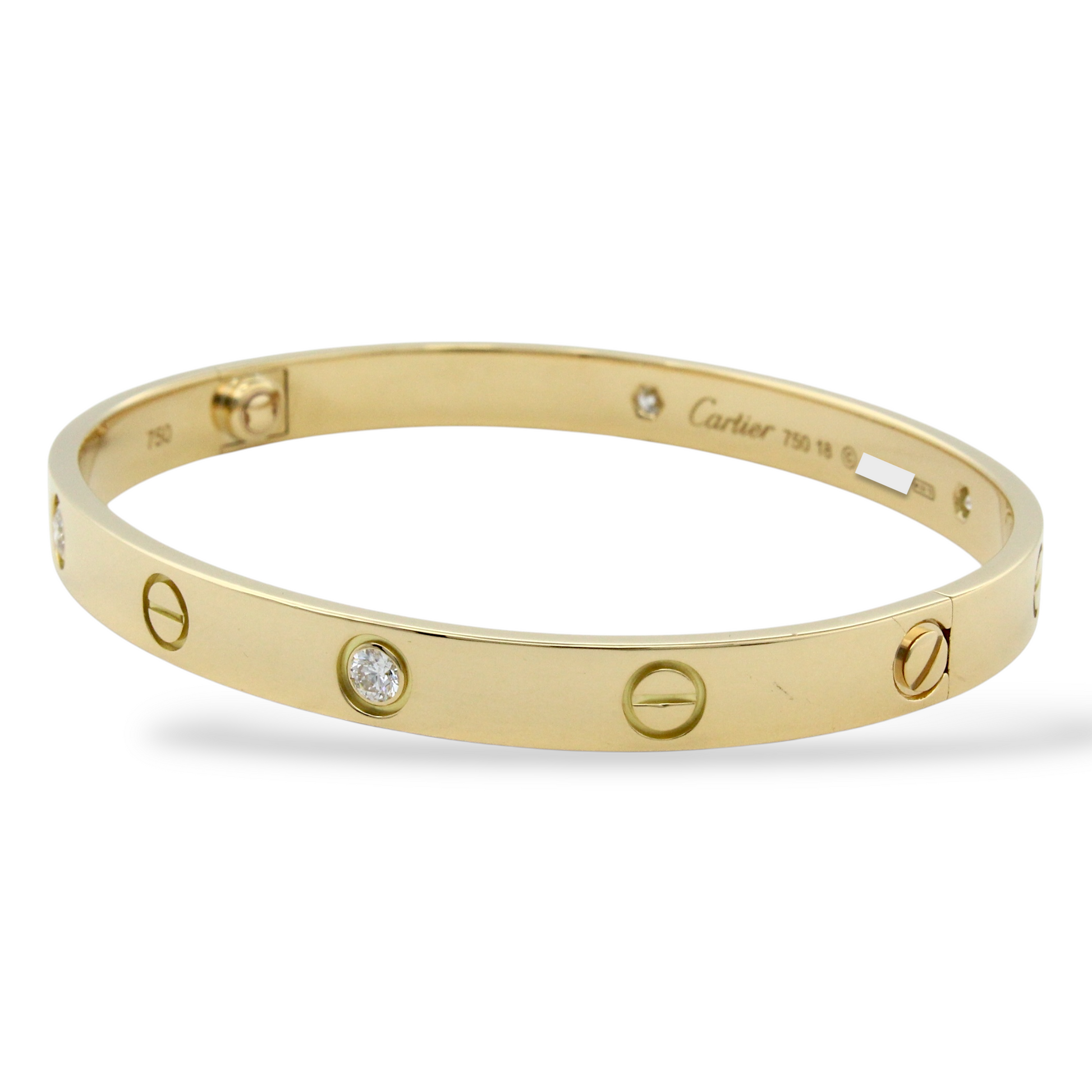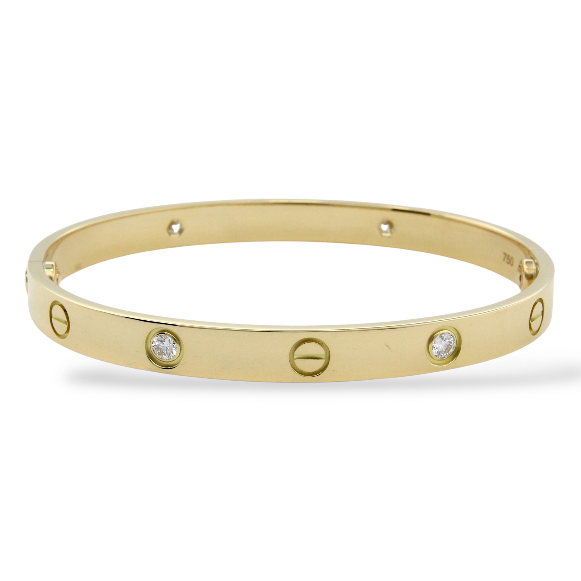 CARTIER Love 4 Diamonds Classic Bangle 18K Yellow Gold Size 18 Paper and Pouch