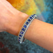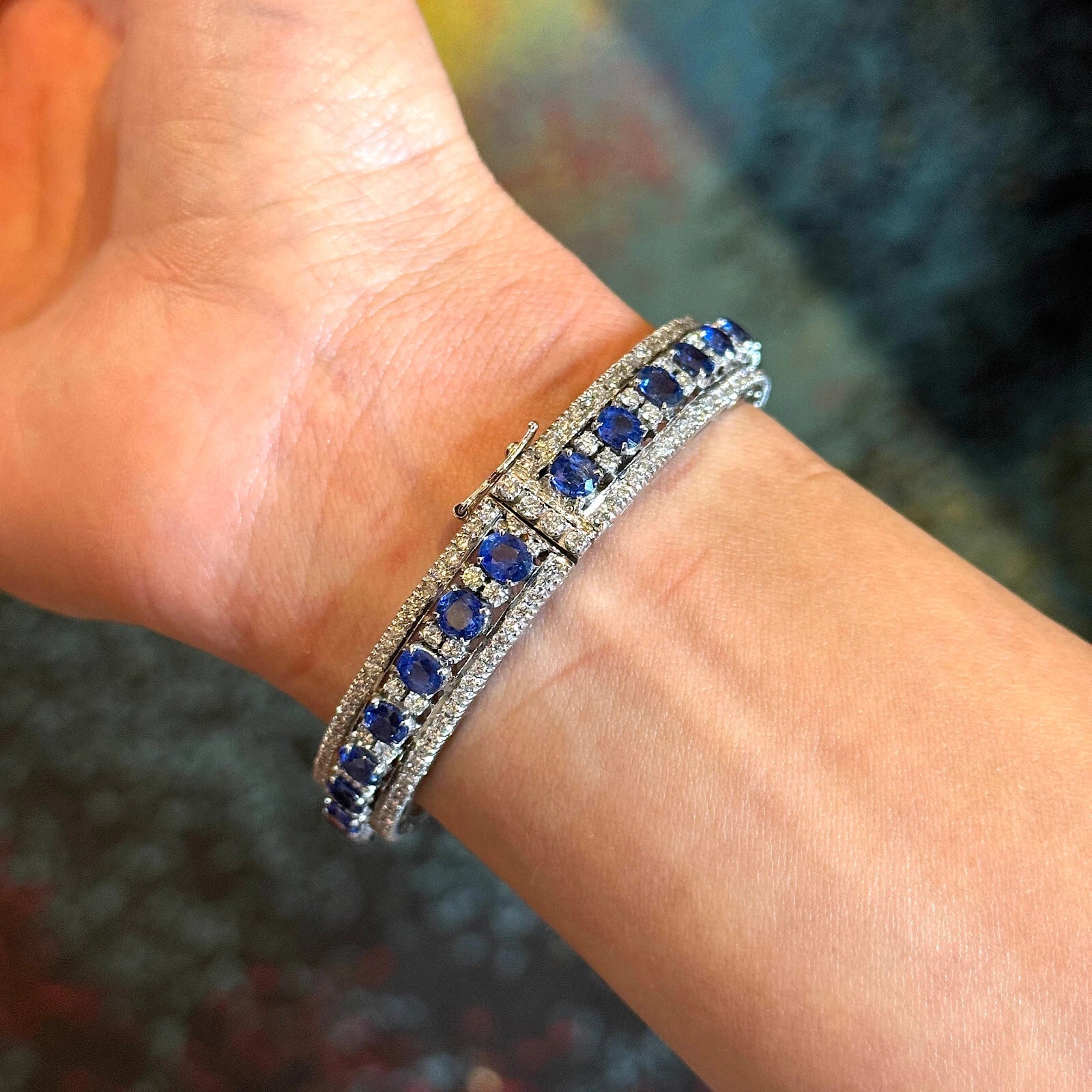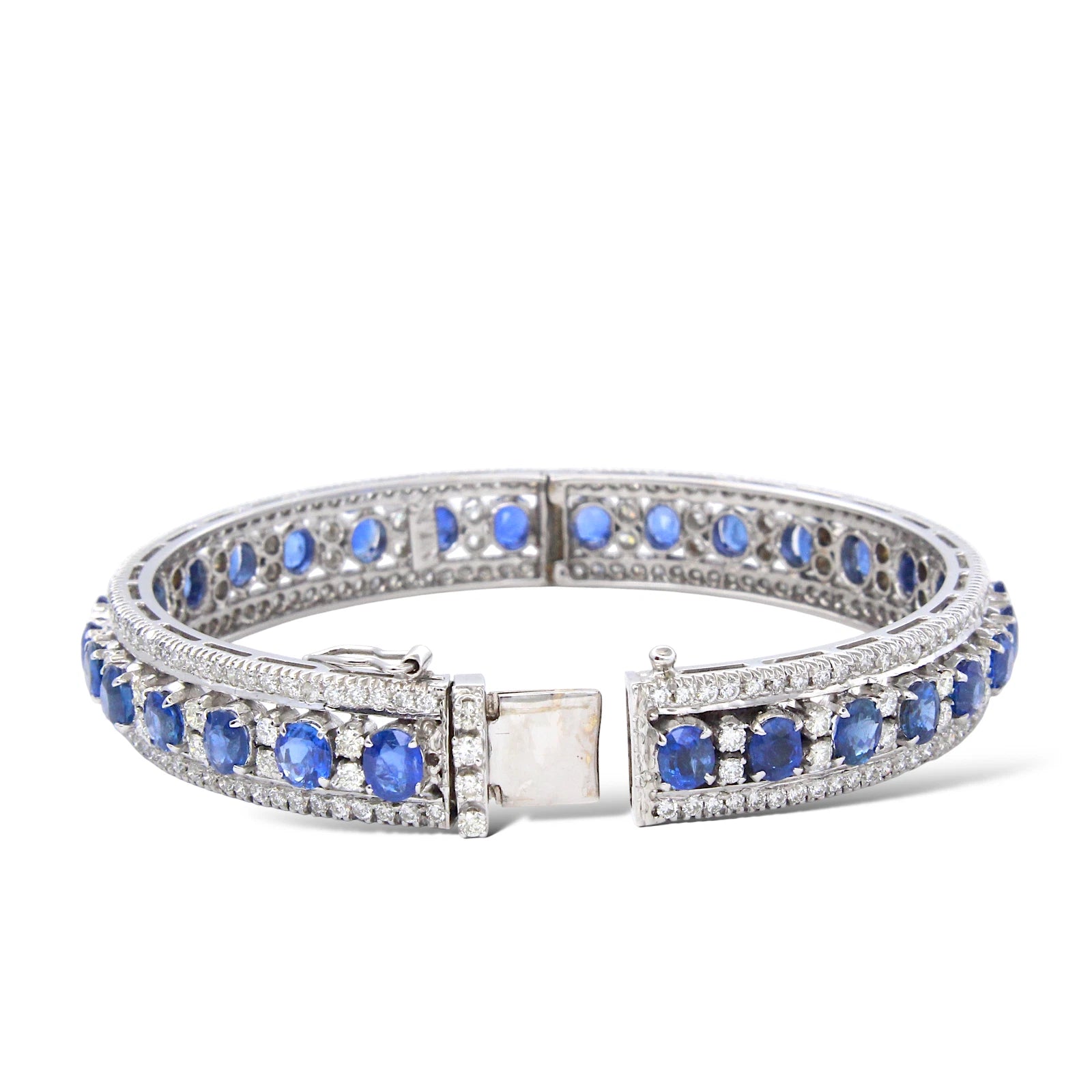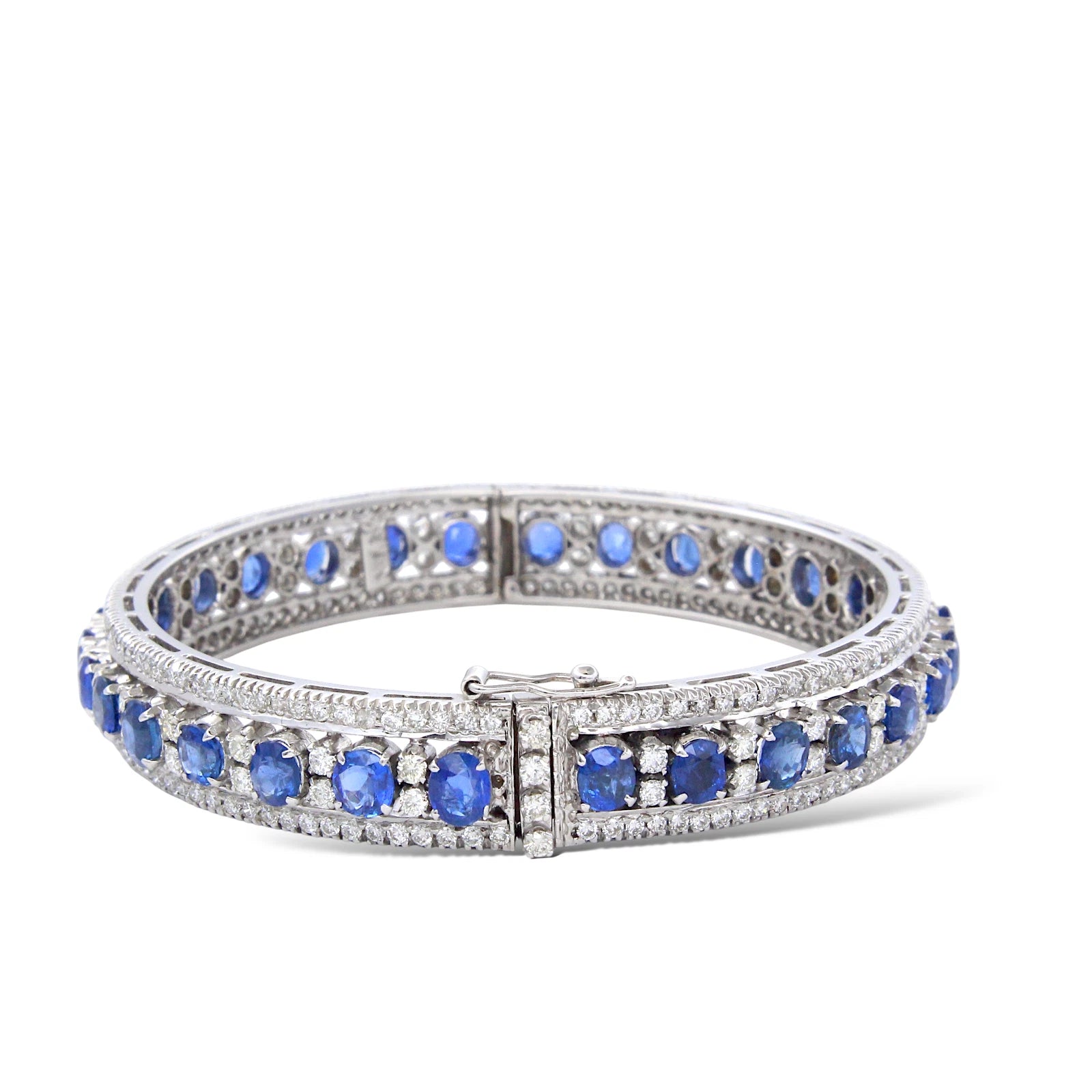 Ceylon Sapphire 15 ct and Natural Diamonds 7 ct Bangle Bracelet 18K White Gold
