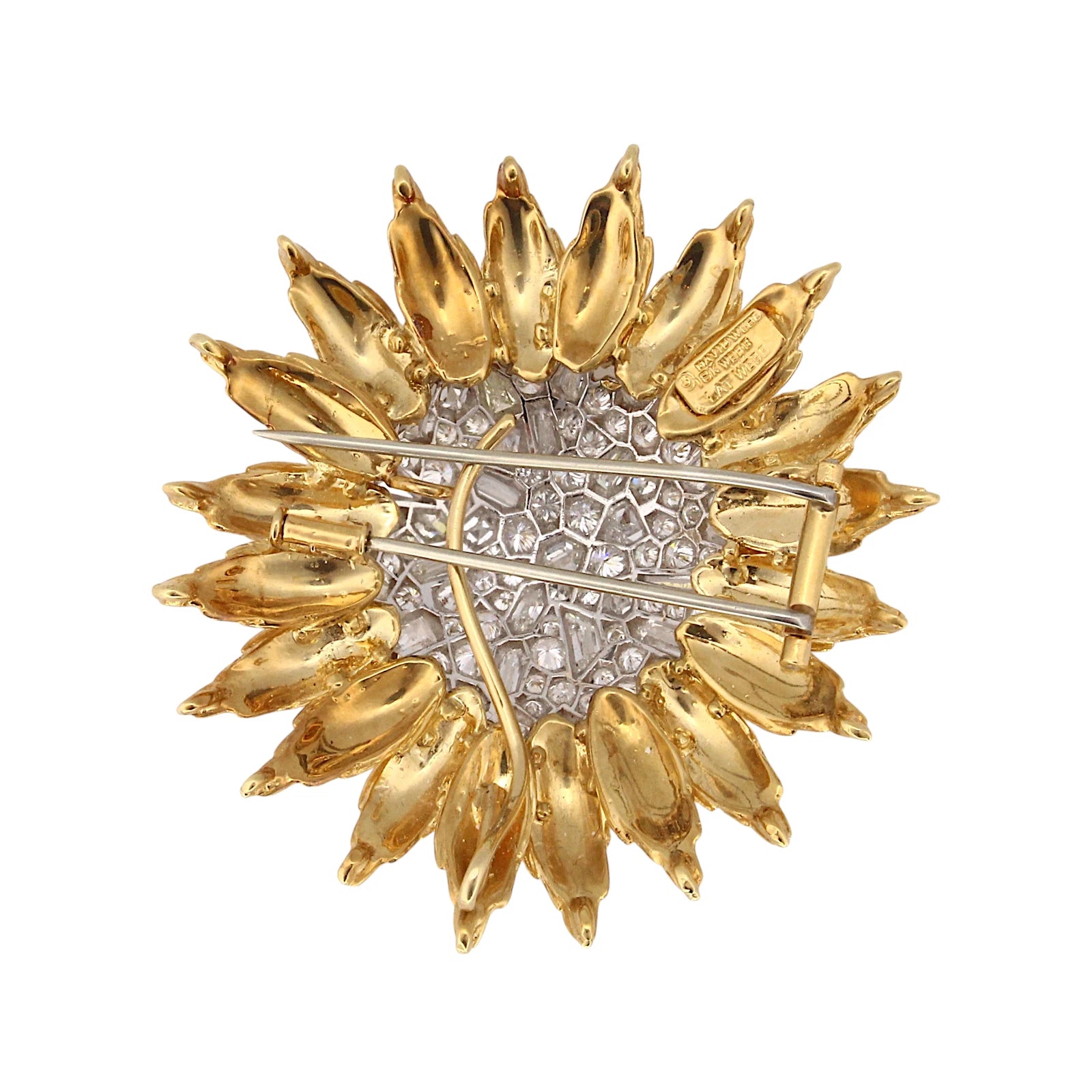 DAVID WEBB 6-8CT Diamond Sun 18K Yellow Gold Platinum Vintage Pin