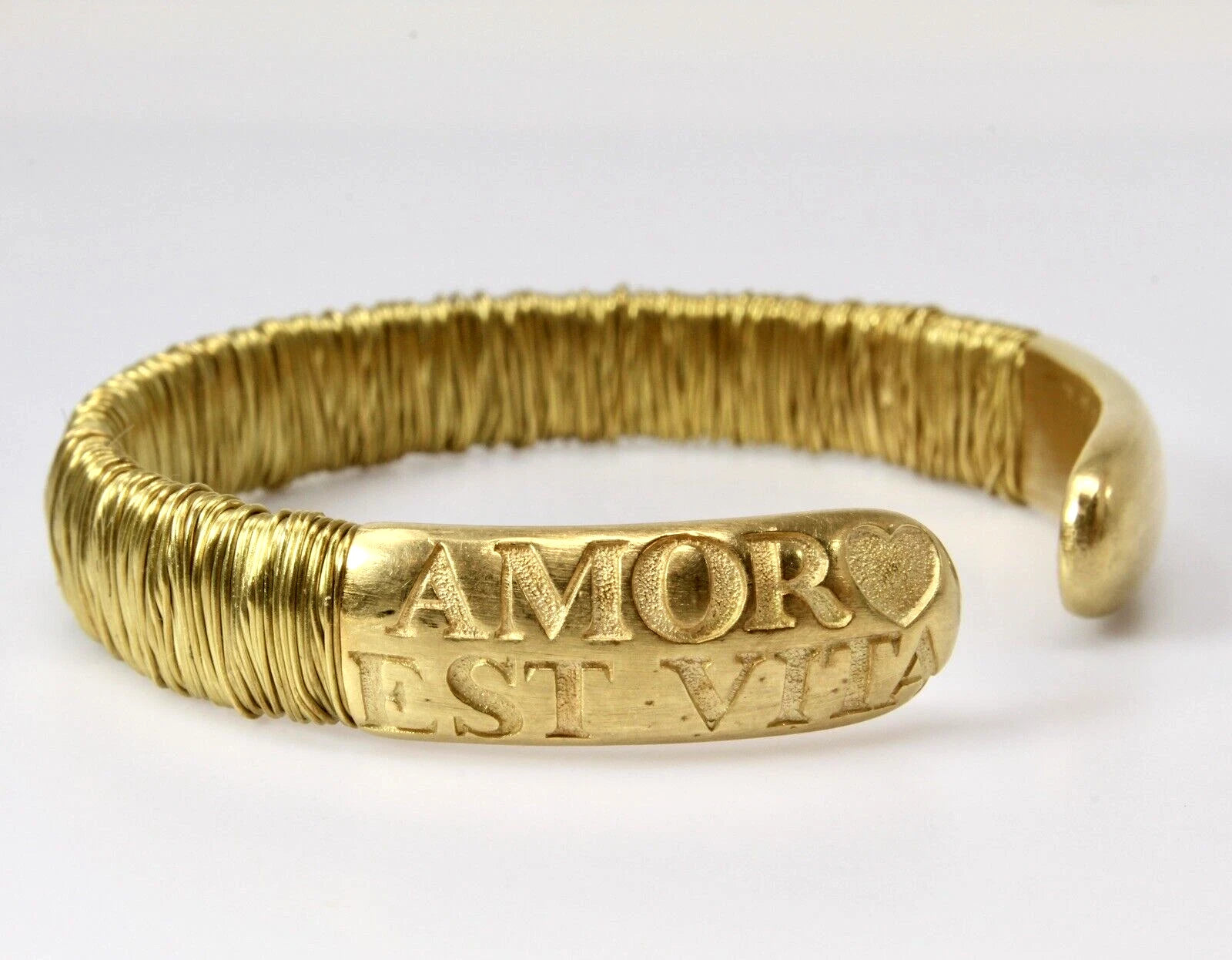 DESIGNER Pasquale Bruni 18k Yellow Gold Amor Est Vita Cuff Bangle Bracelet