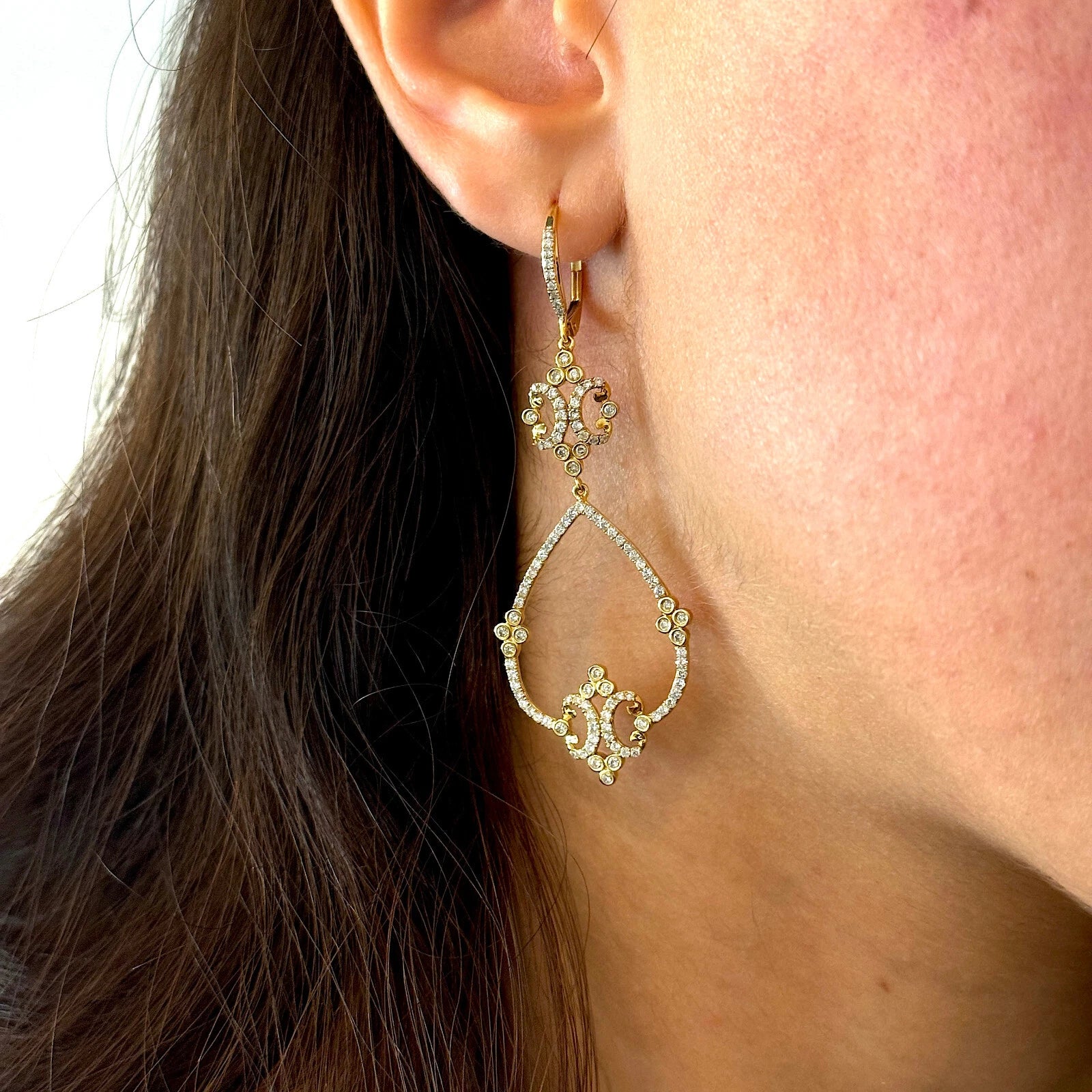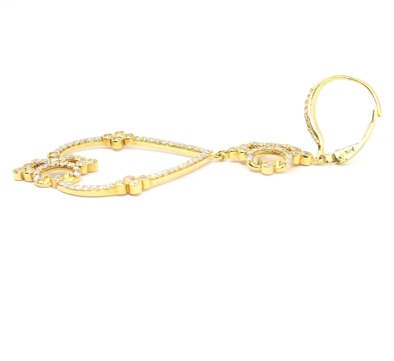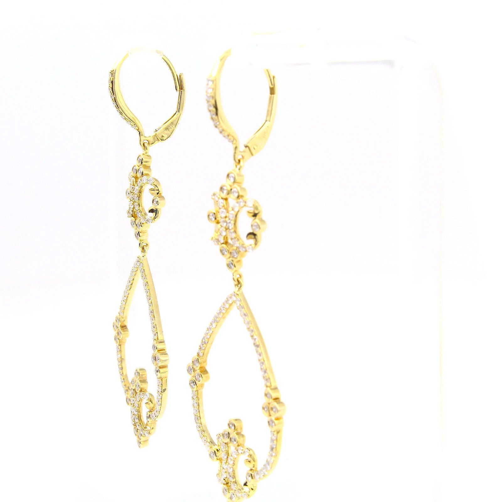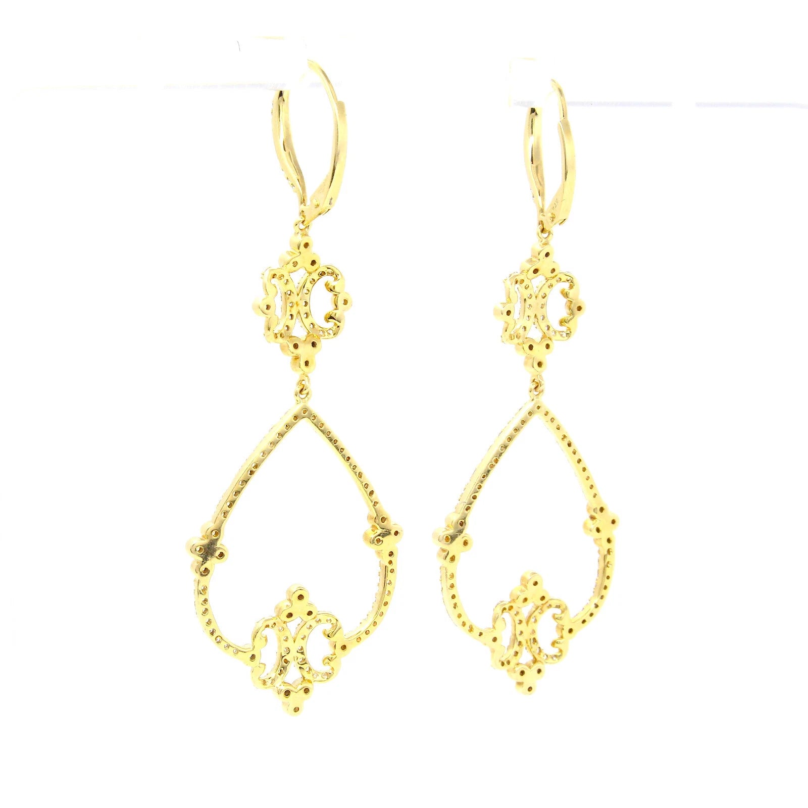 Diamond 0.80 CT Dangle Drop Earrings Ornate Filigree Design 14K Yellow Gold