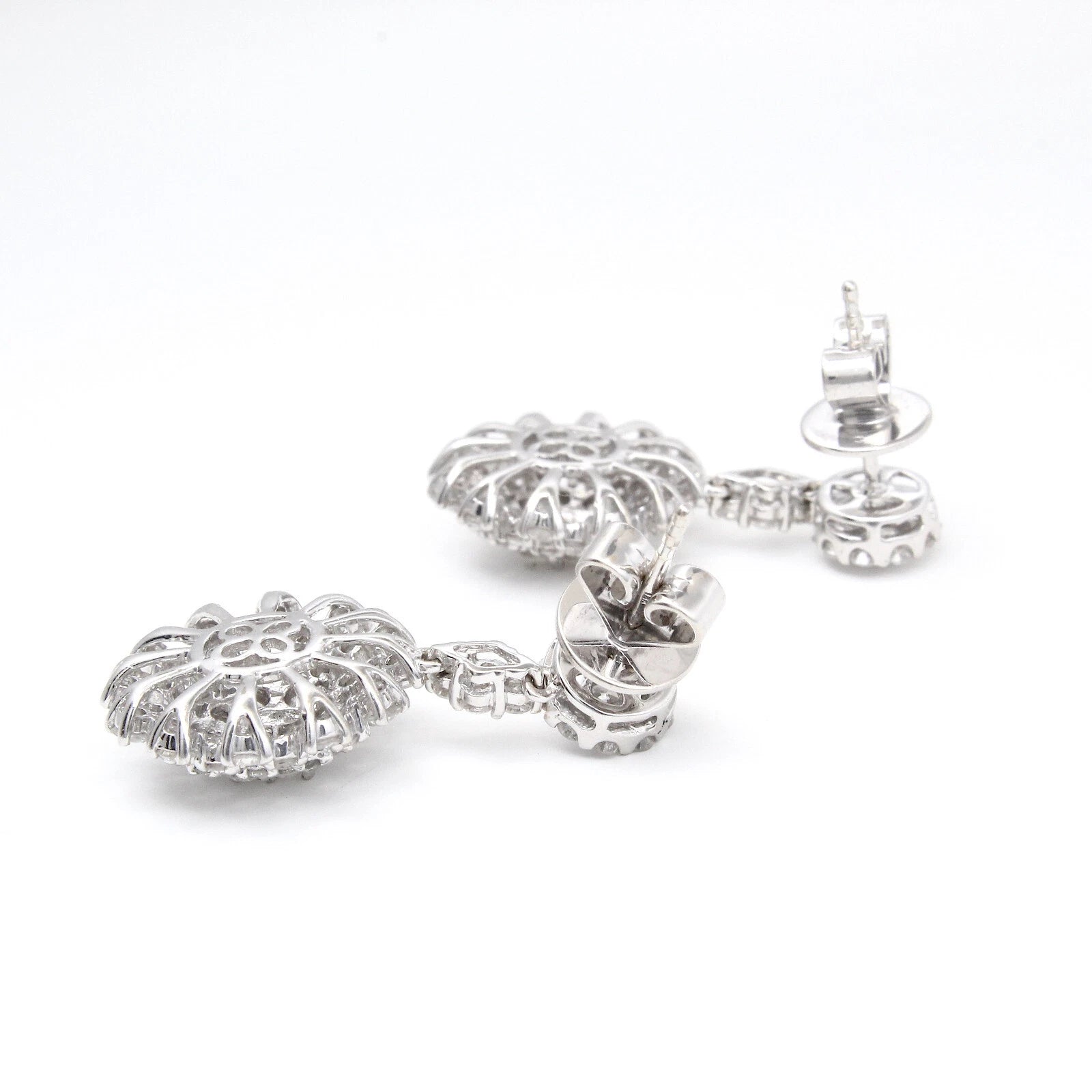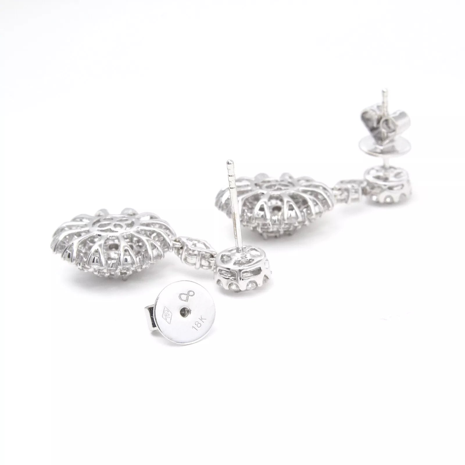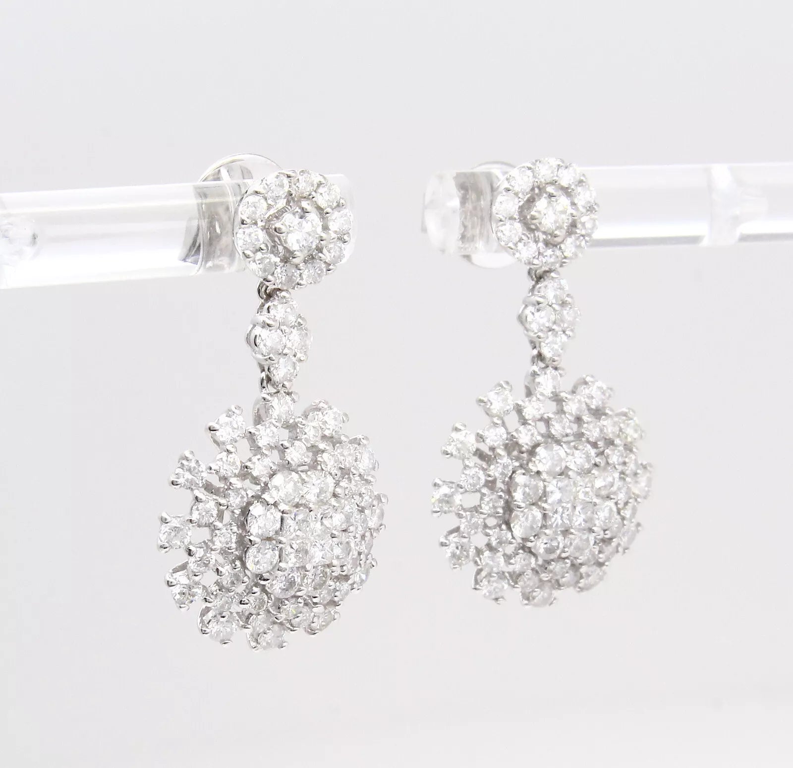 Diamond Cluster Drop Earrings 2 CT Elegant Dangle Jewelry 18K White Gold