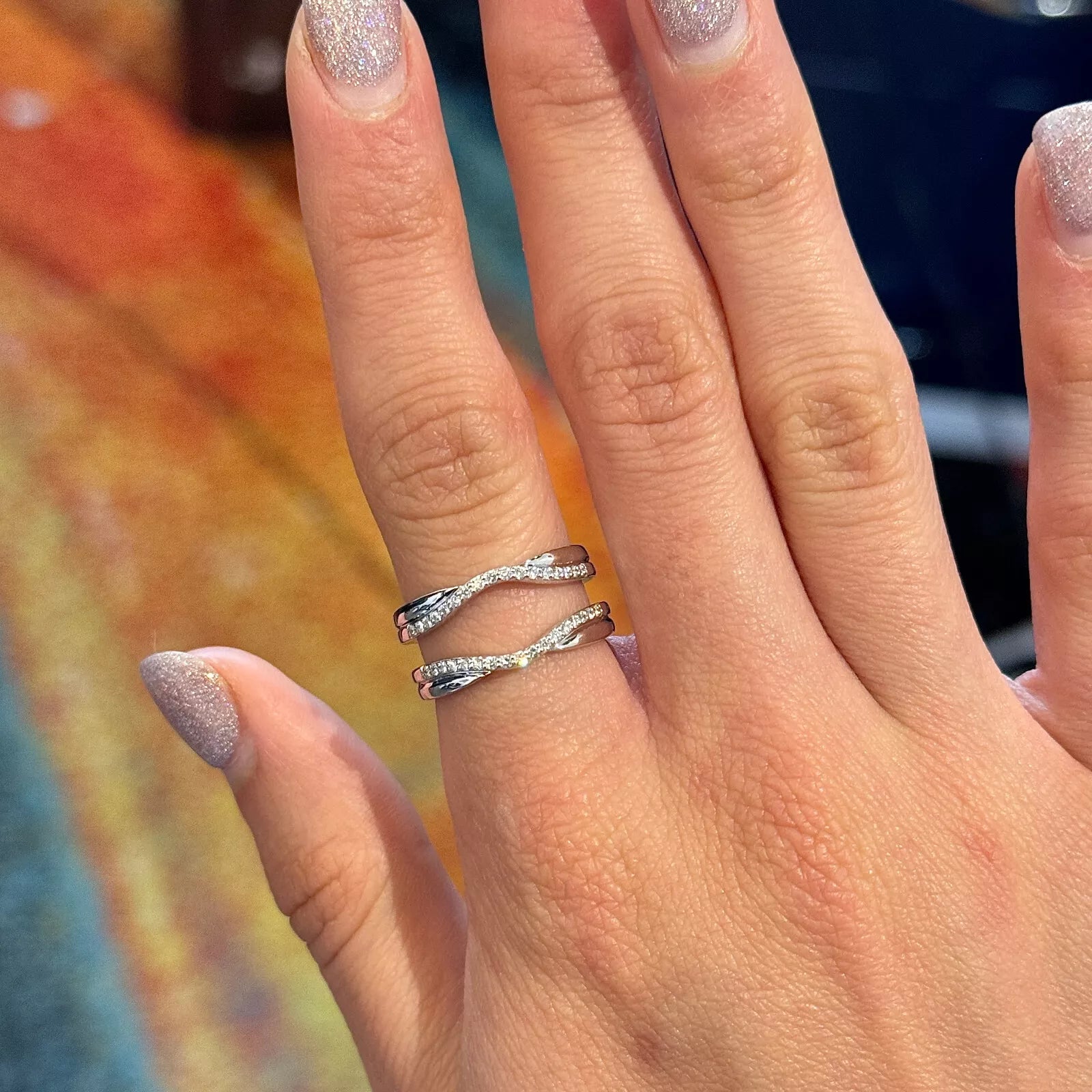 Diamond Double Wrap Band Ring Enhancer 14K White Gold Ring 0.20 CT Size 6