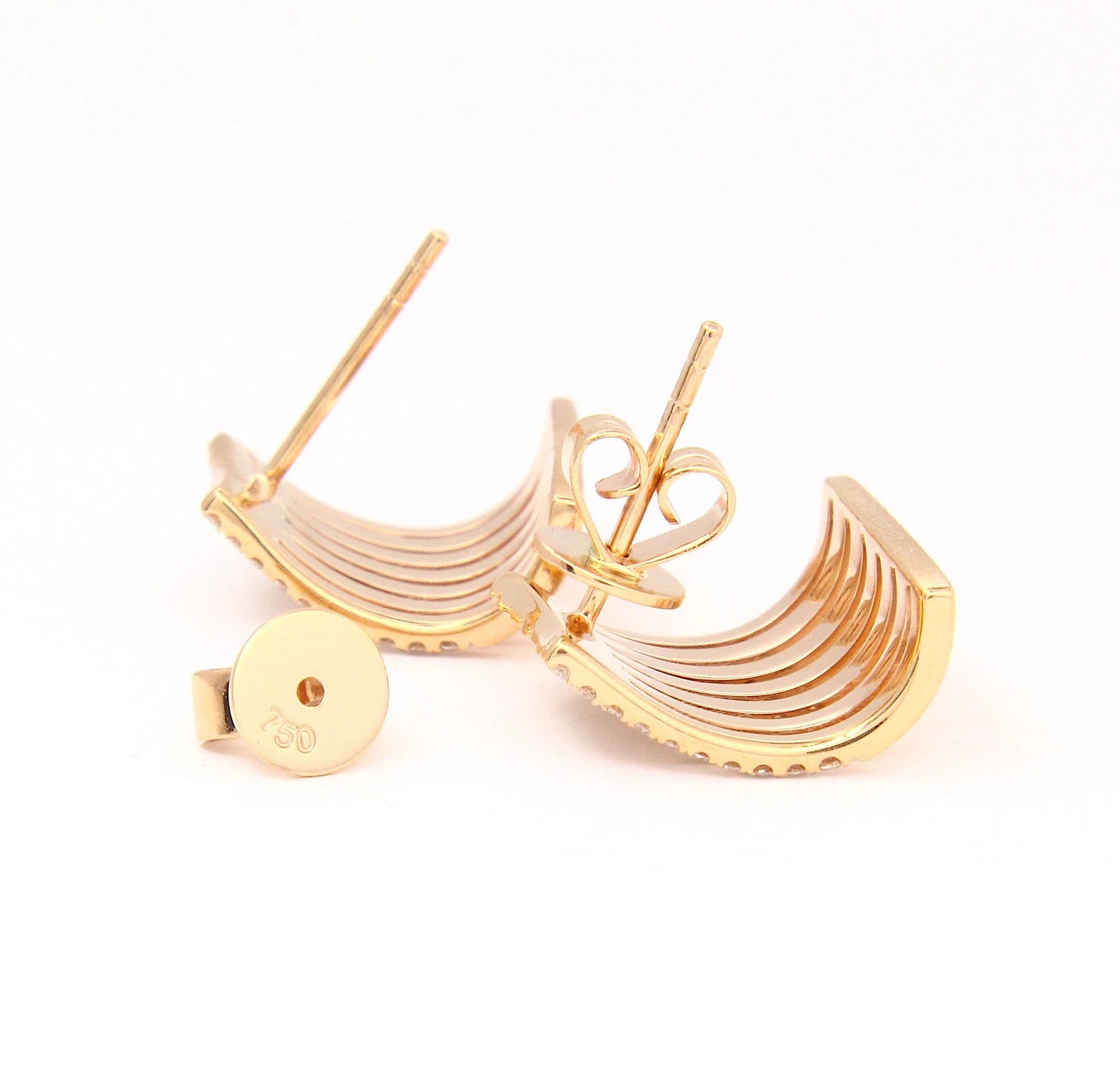 Diamond Fan Cluster Gold Stud Earrings 0.68 CT 18K Rose Gold