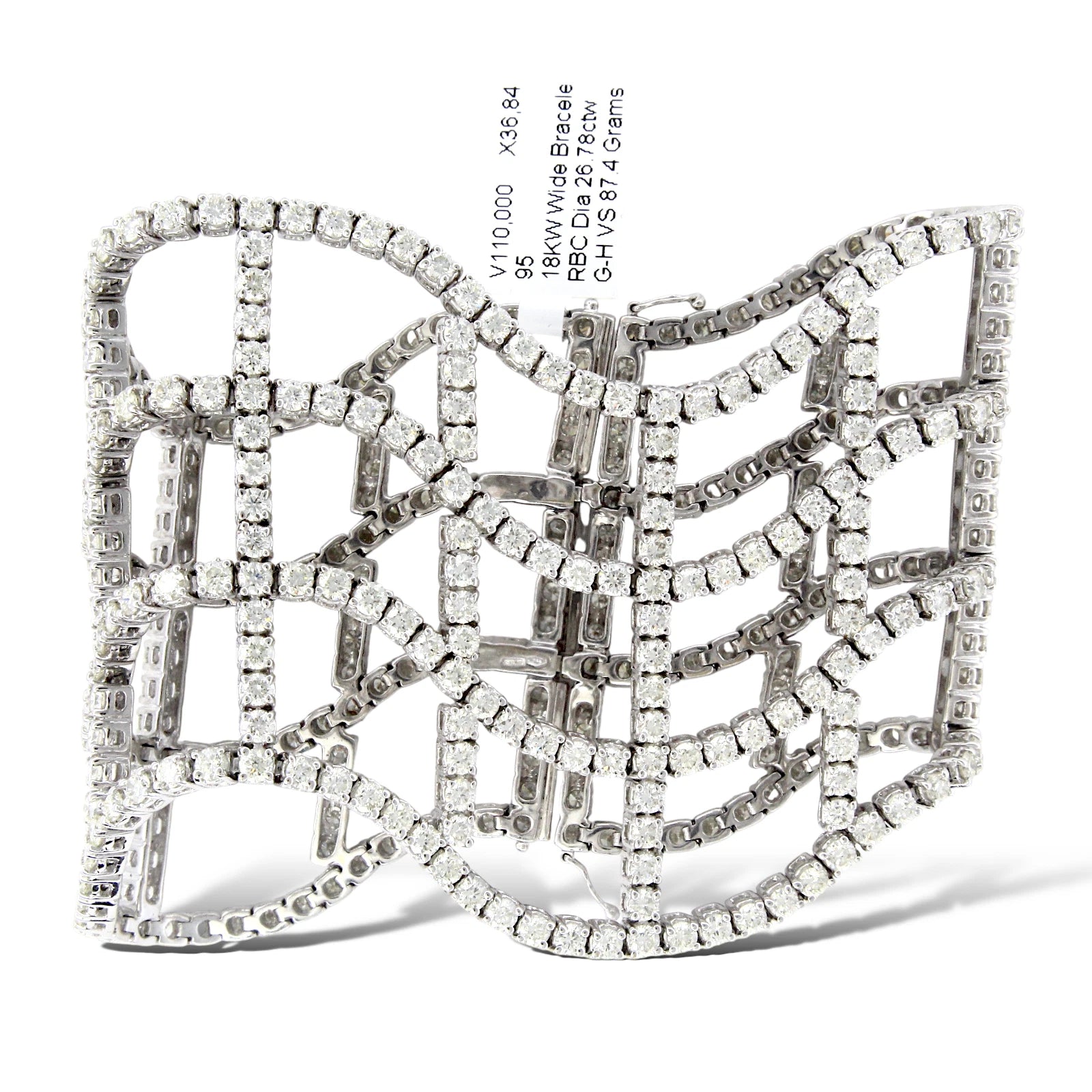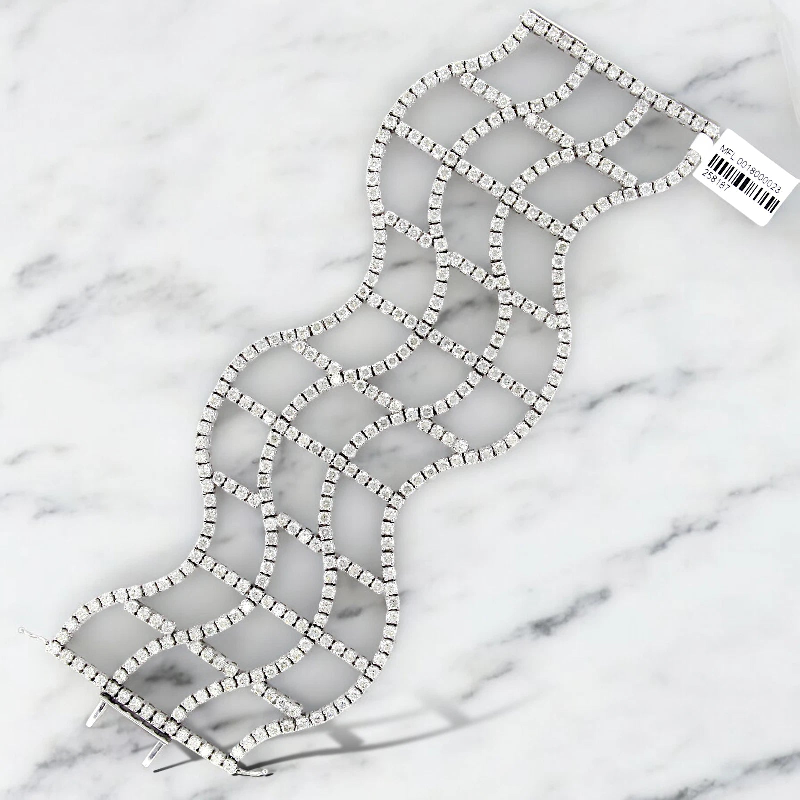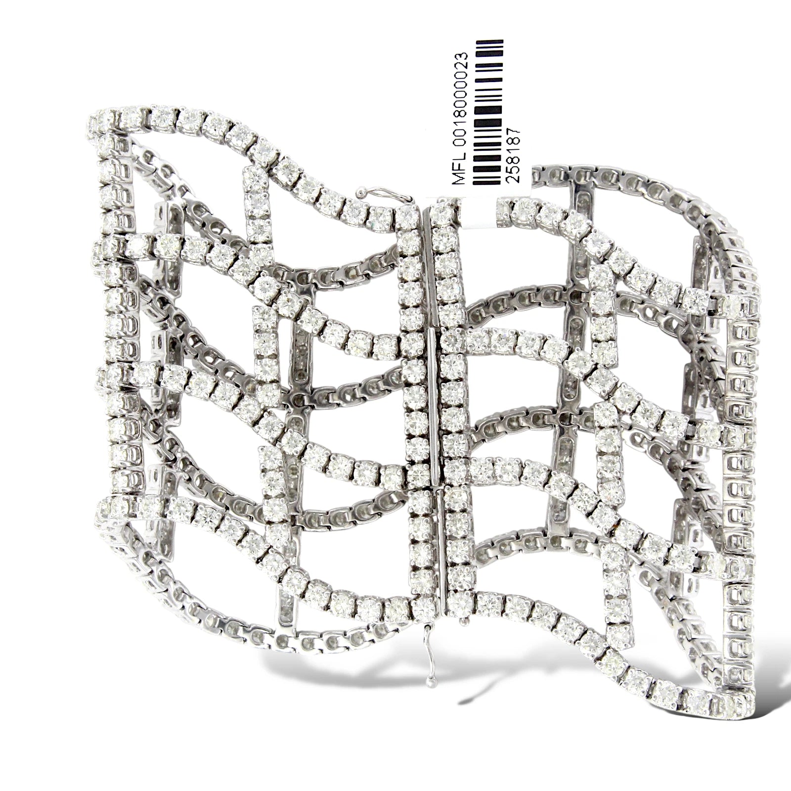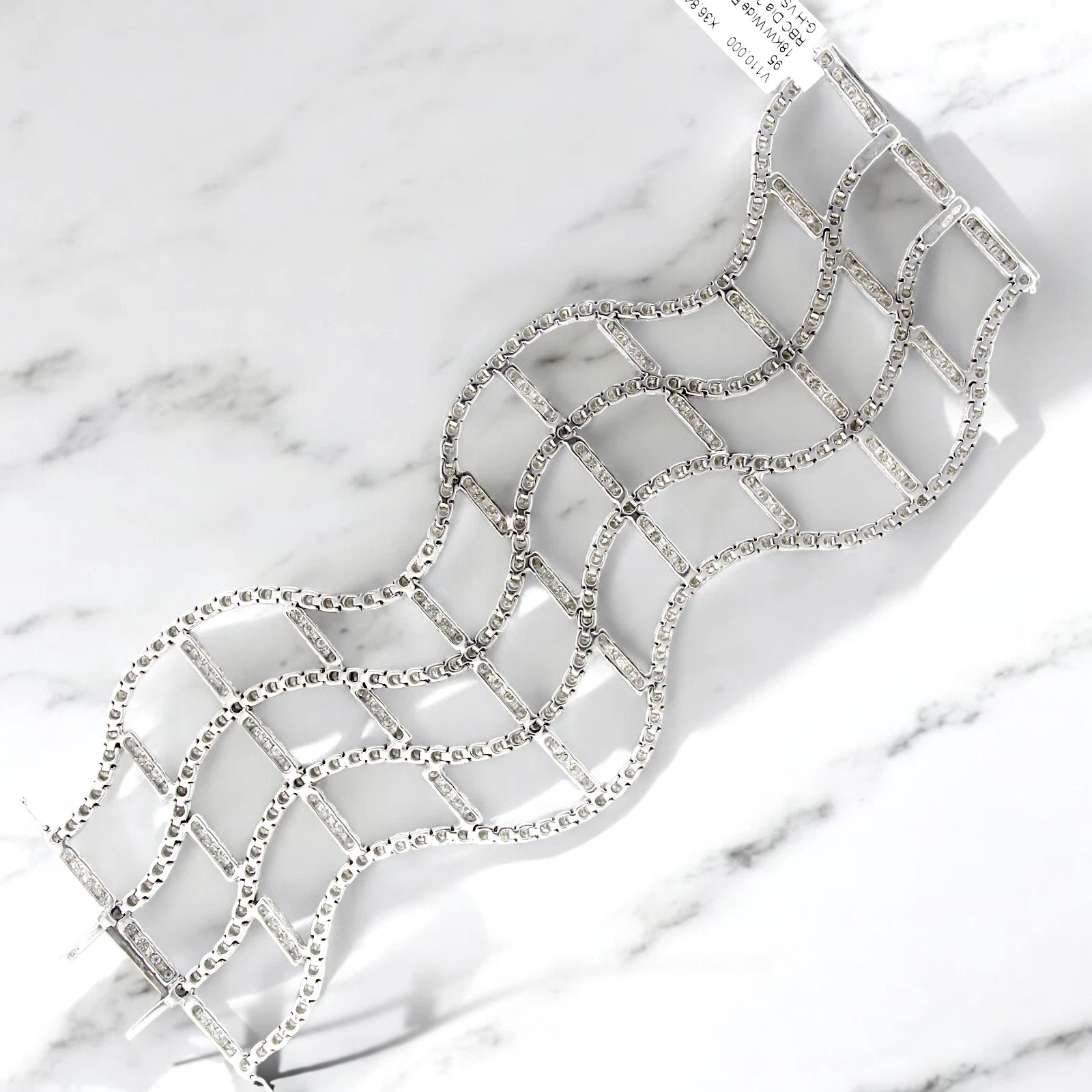 Diamond Statement Wide Bracelet 22 to 24 CT 18K White Gold 7" Inches