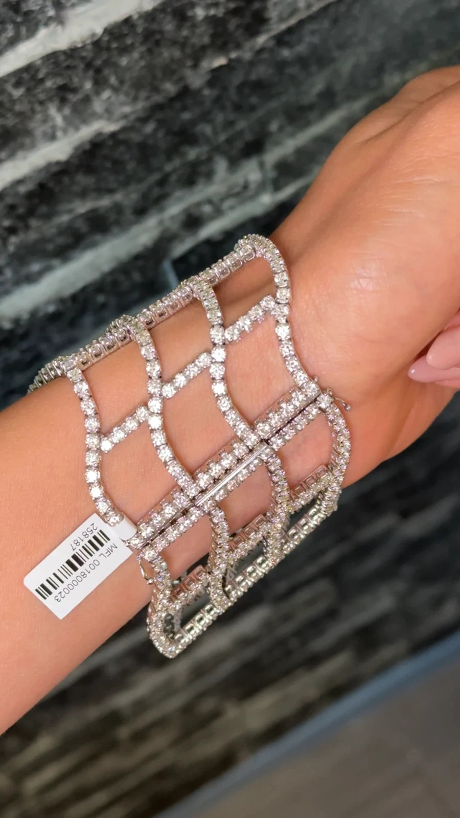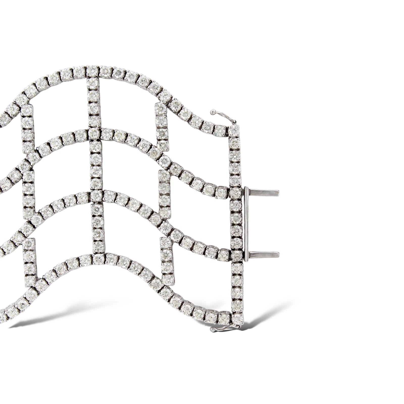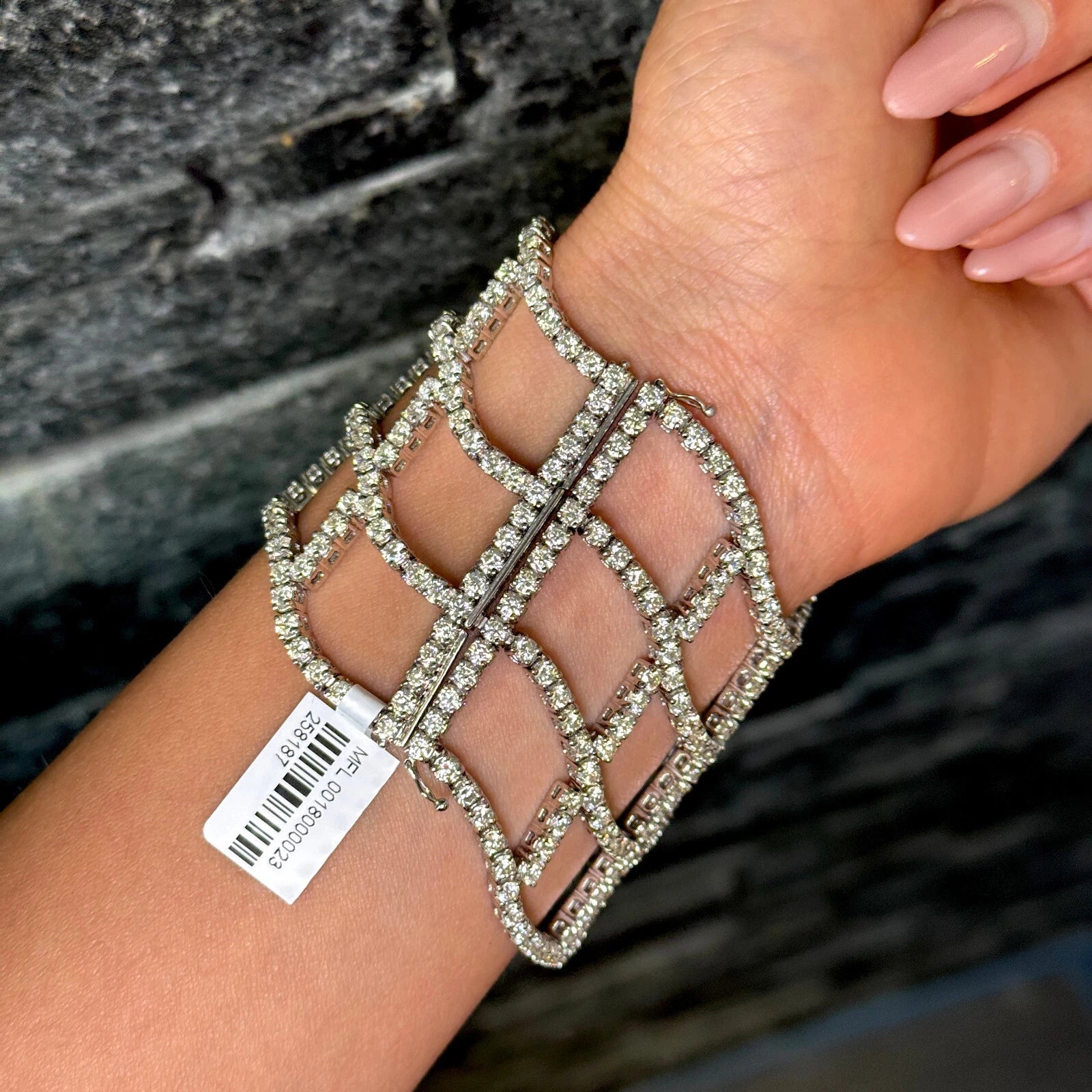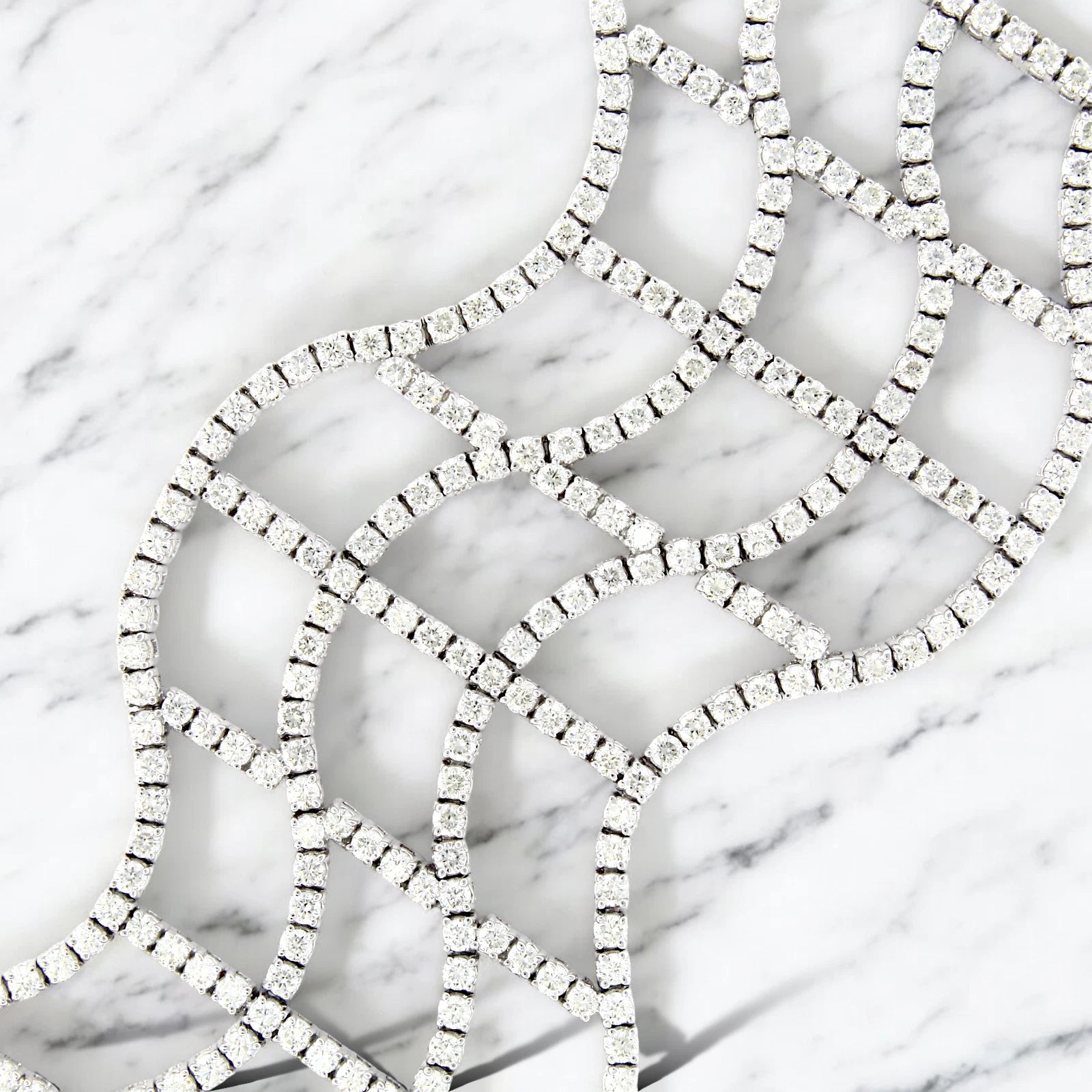 Diamond Statement Wide Bracelet 22 to 24 CT 18K White Gold 7" Inches