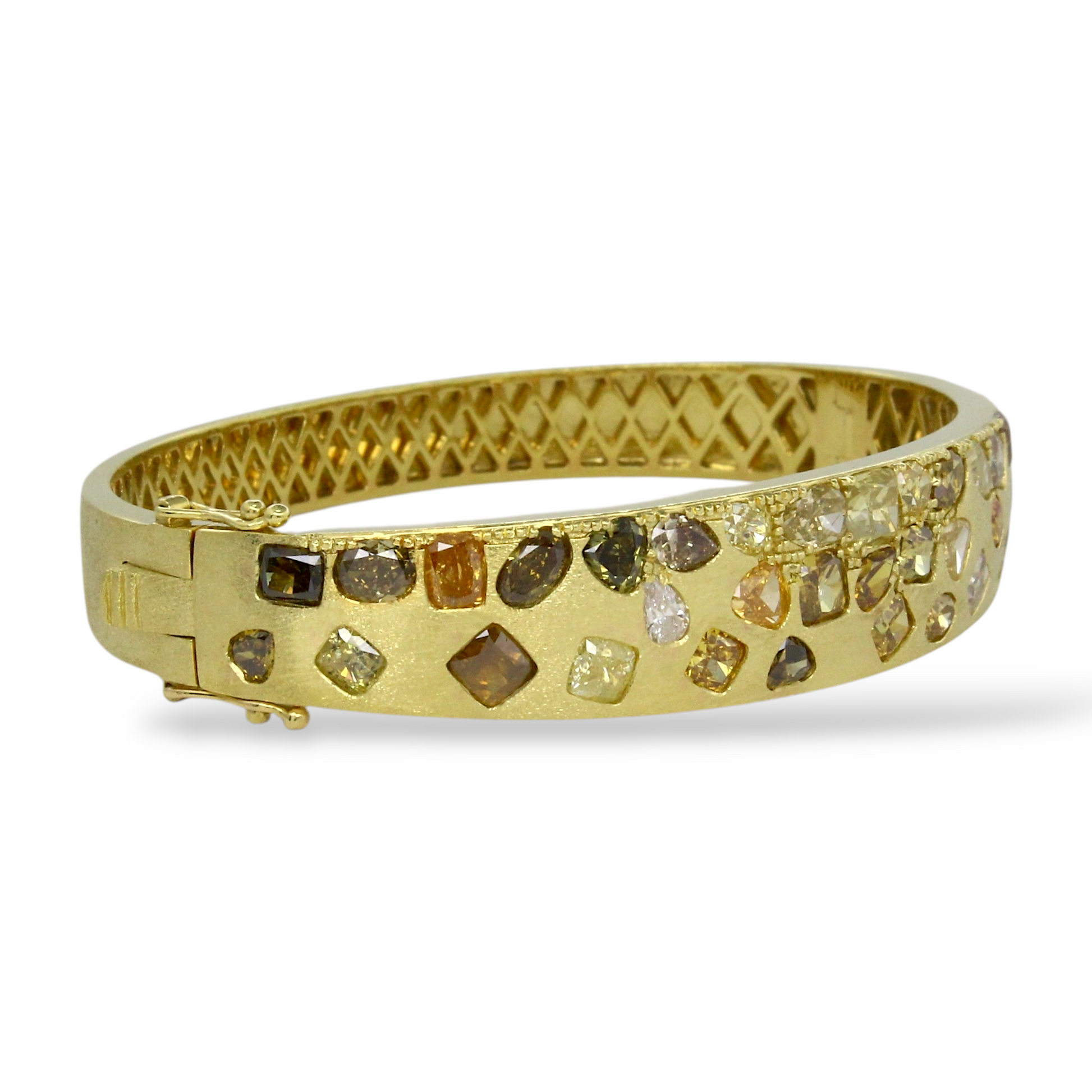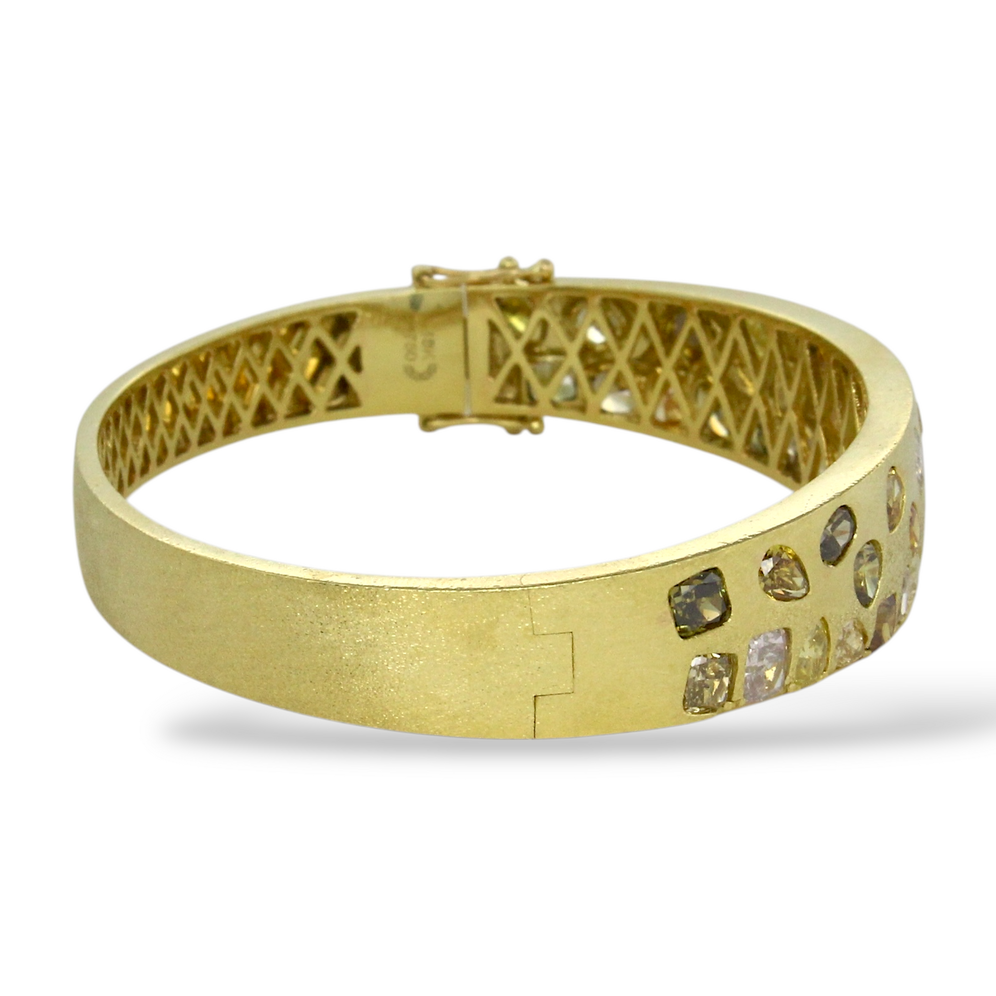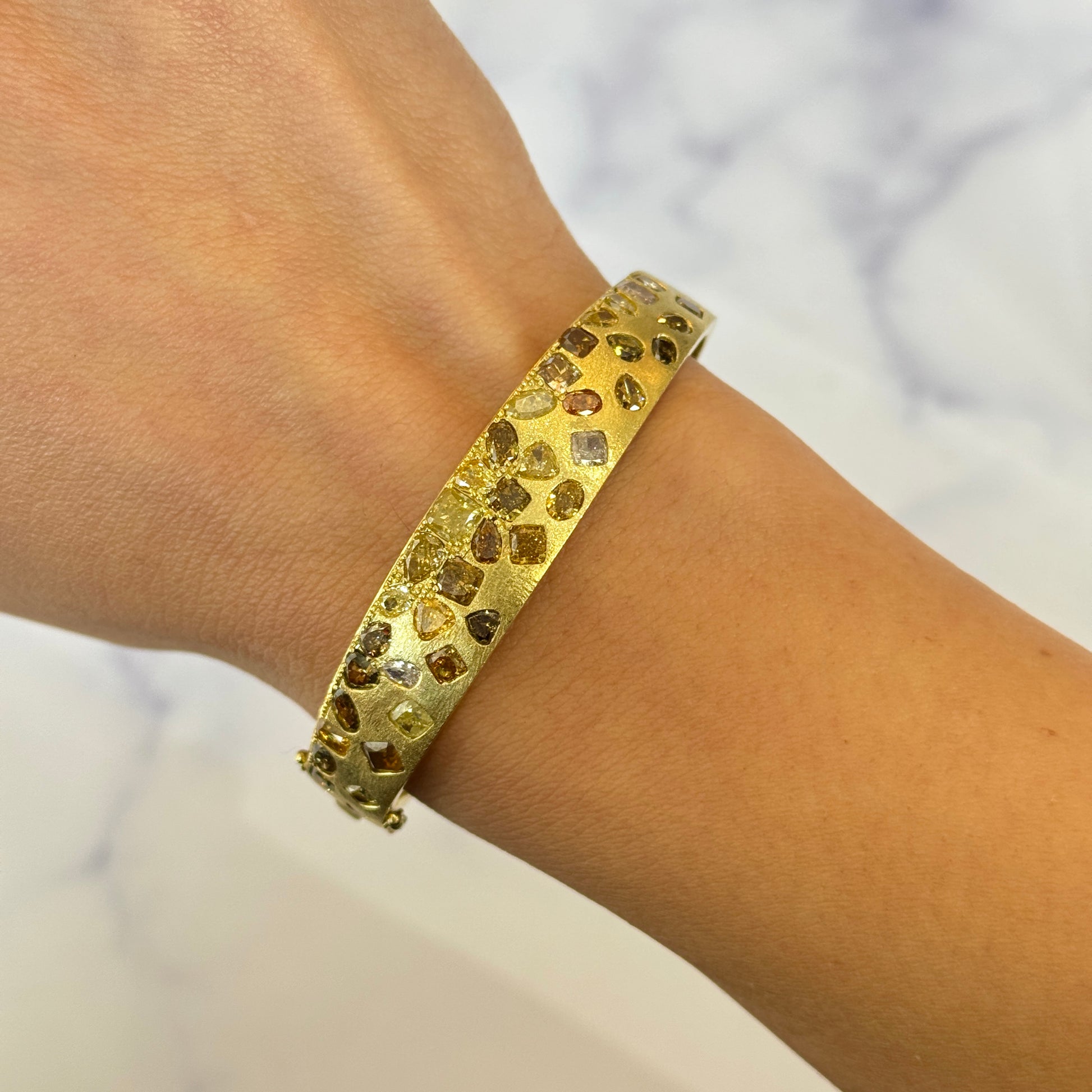 DILAMANI Fancy Natural Diamond Brushed Bangle Bracelet 7.5 CT 18K Yellow Gold