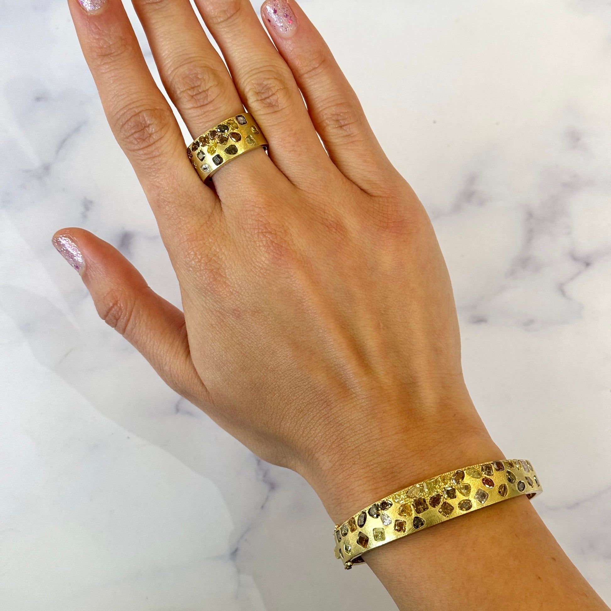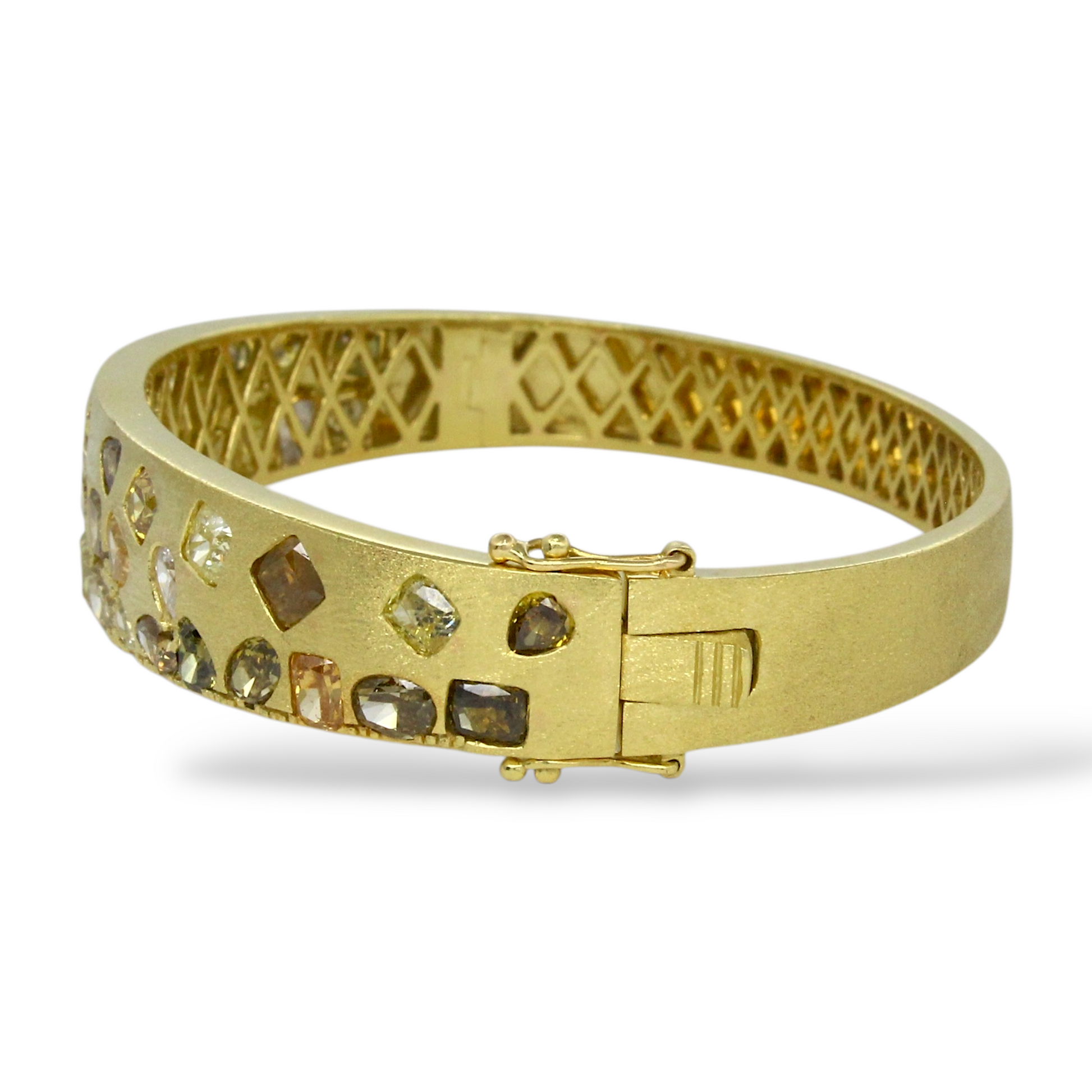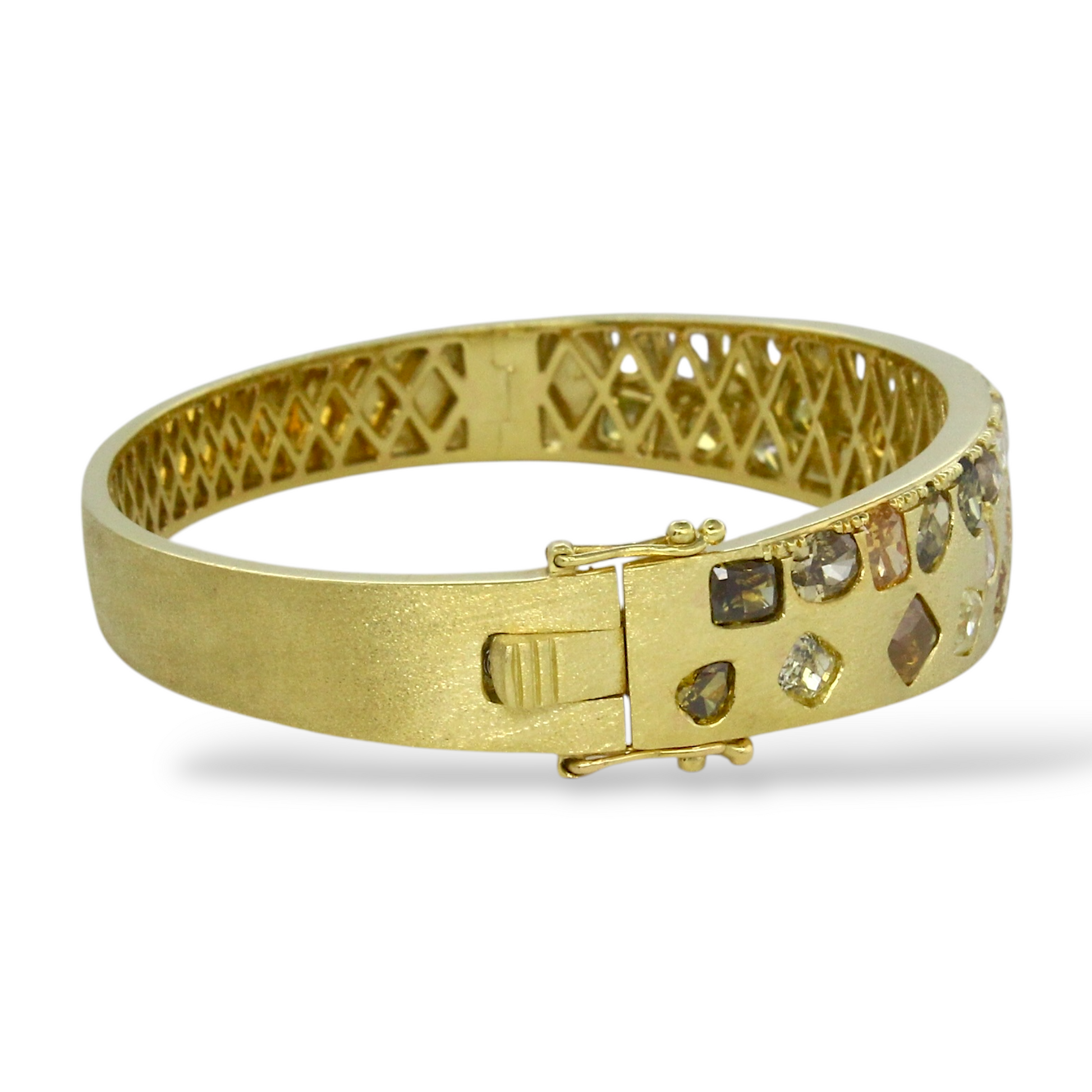 DILAMANI Fancy Natural Diamond Brushed Bangle Bracelet 7.5 CT 18K Yellow Gold