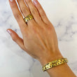Bangle: 11.6 mm widest point (center) x 6.8 mm (back) wide; 3.4 mm thickness (front) x 1.7 mm thickness (back)