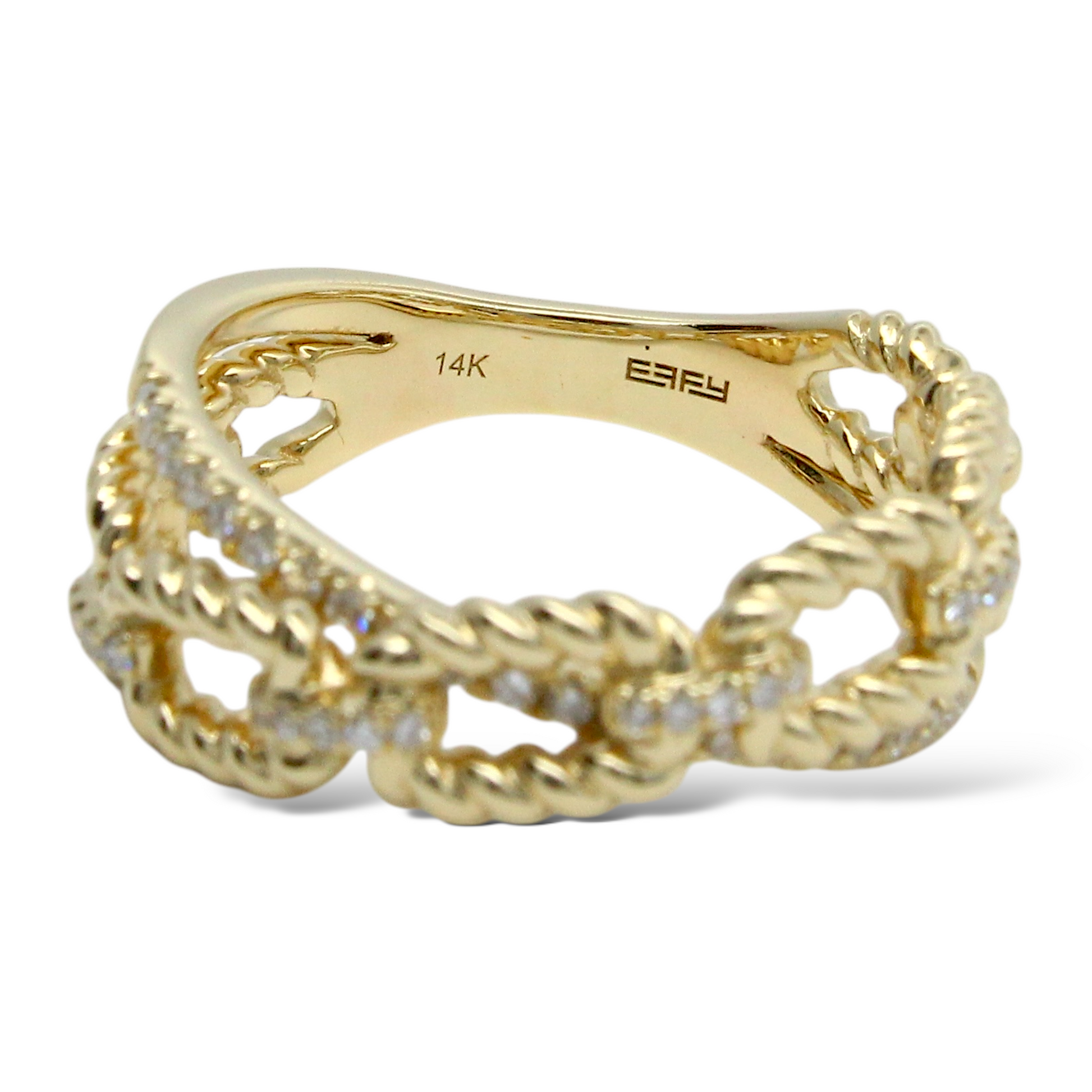 EFFY Natural Diamond Ring Cable Twisted Link Band 14K Yellow Gold Size 7