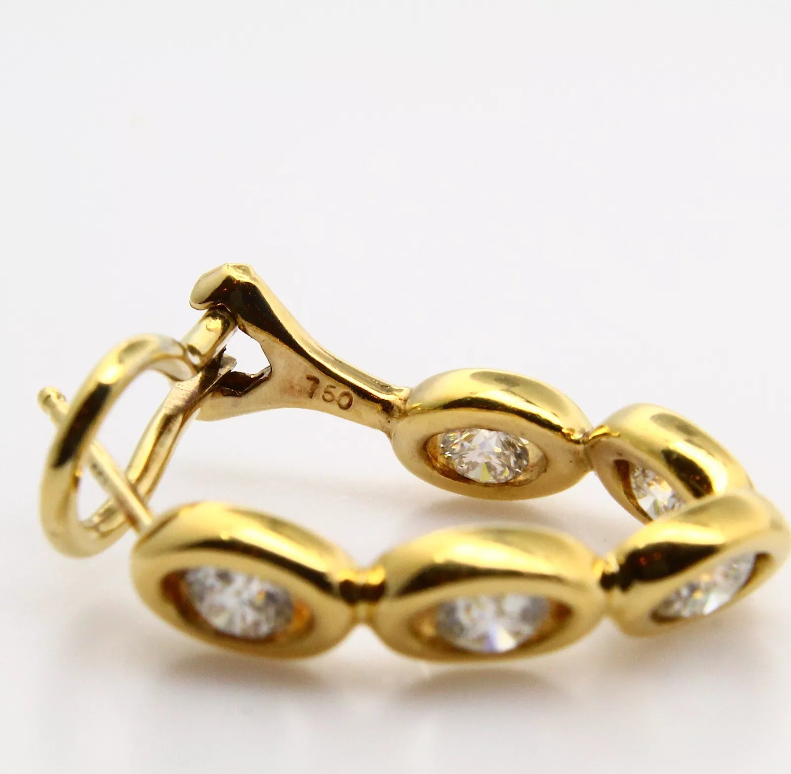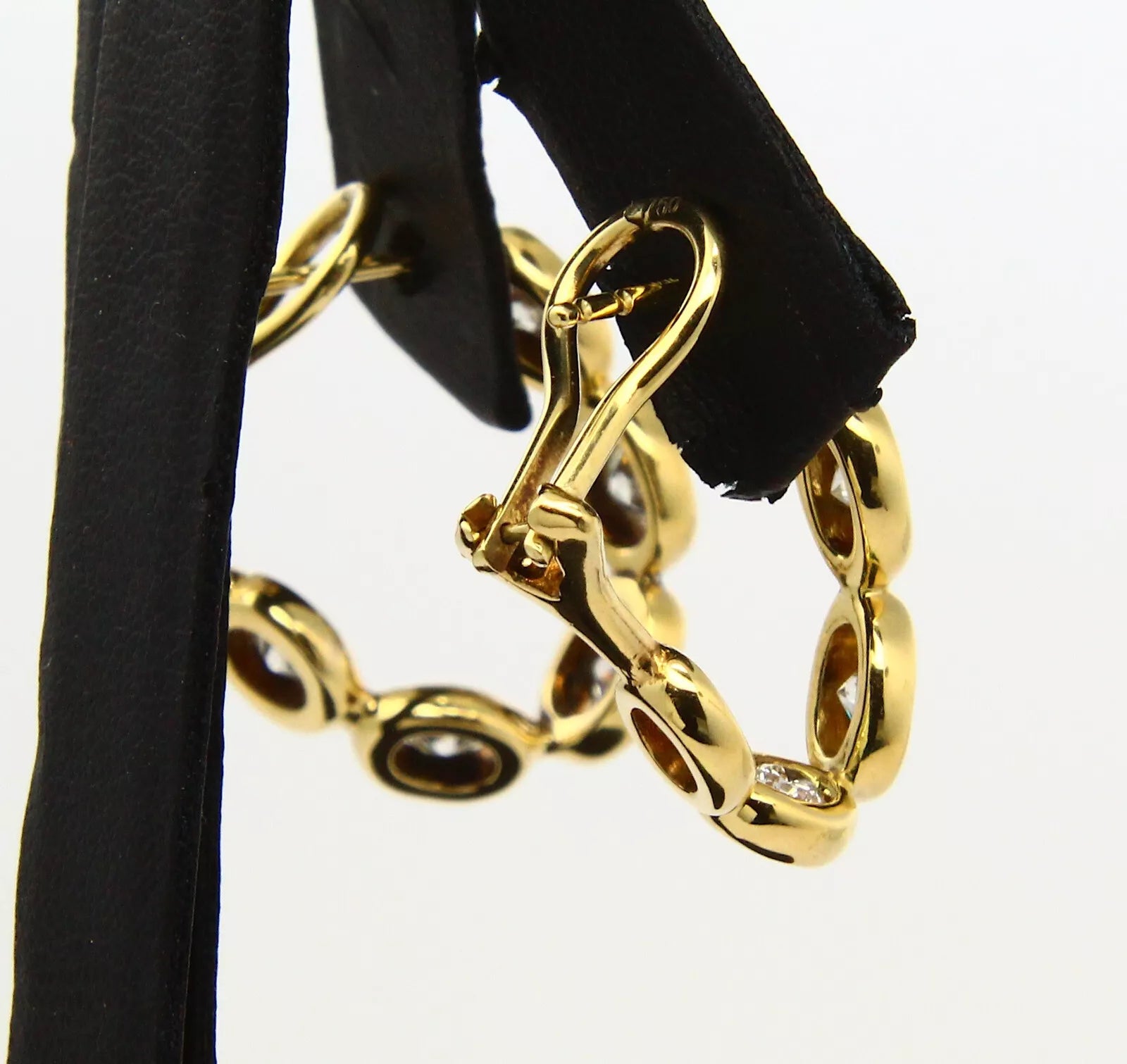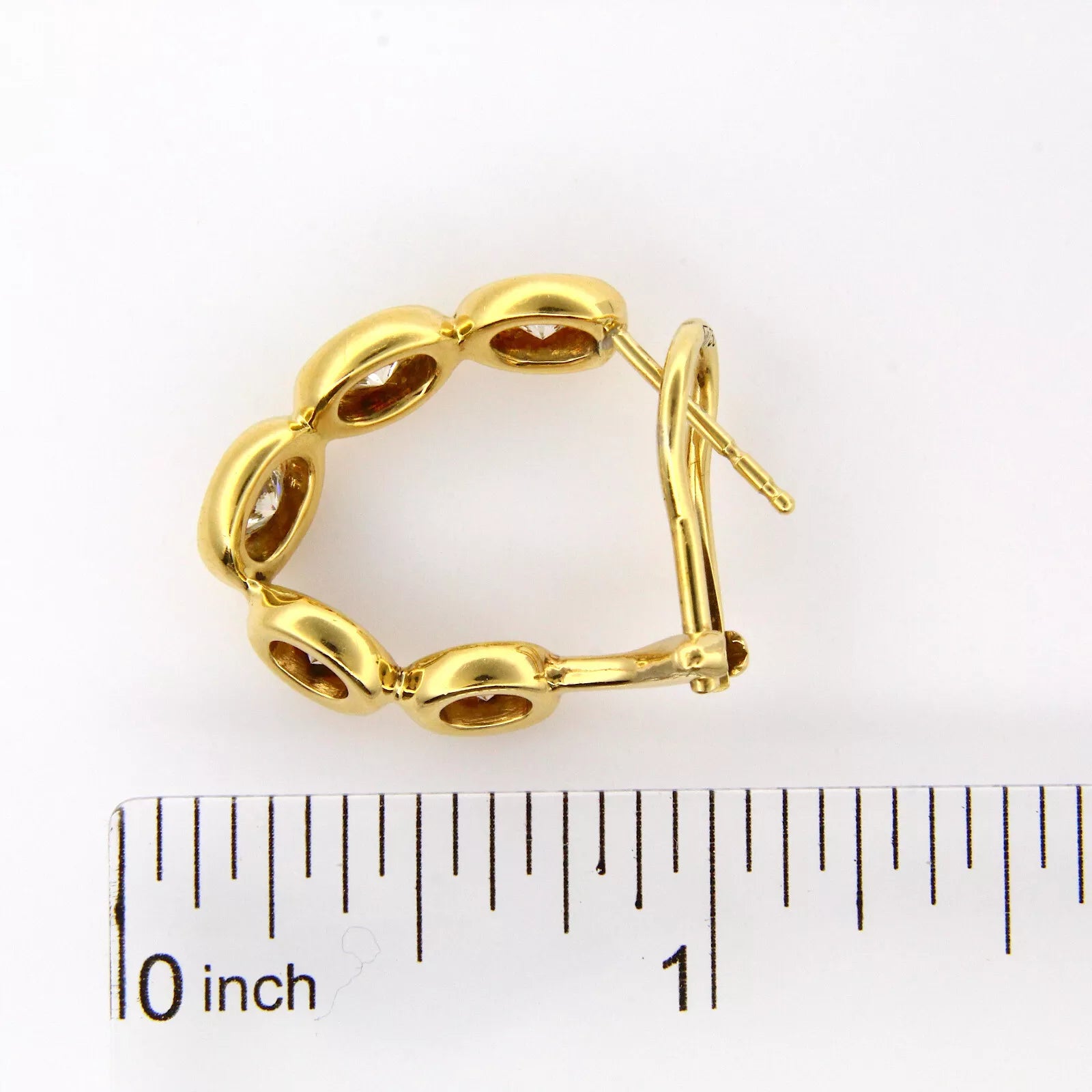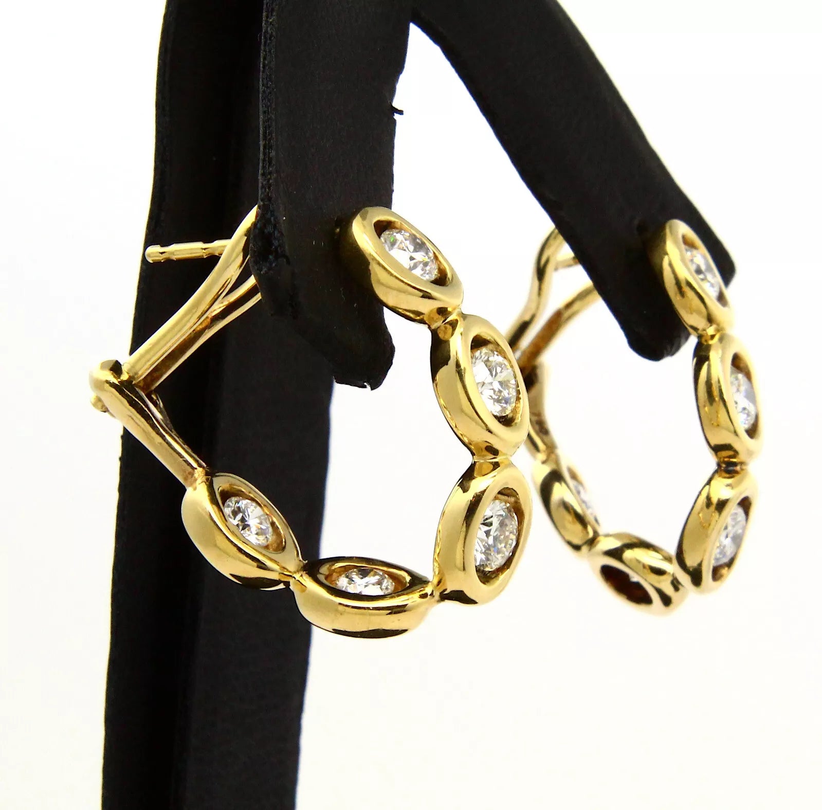 Estate 1.40 CT Natural Diamond Round Angled Hoop Earrings In 18K Yellow Gold