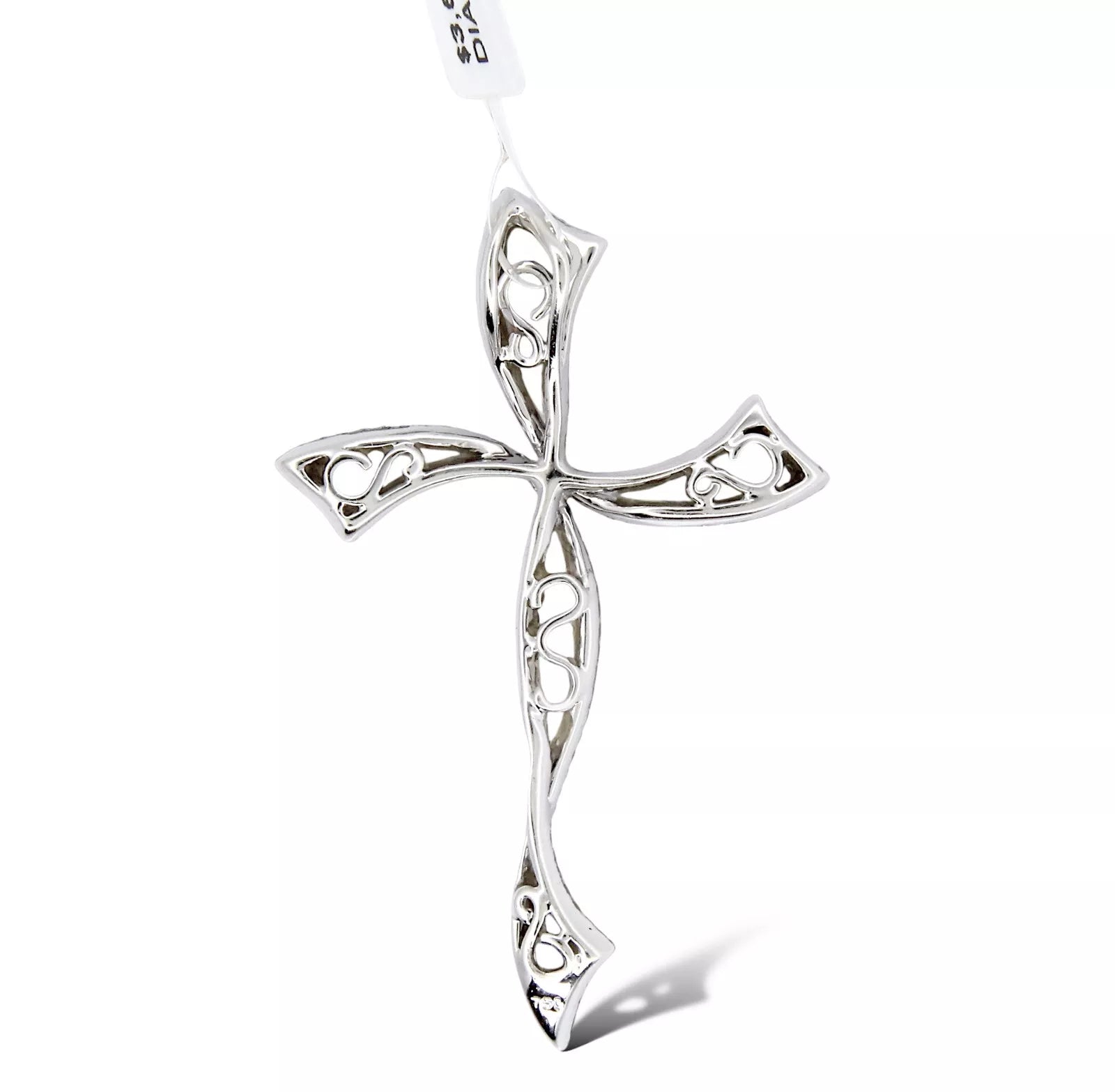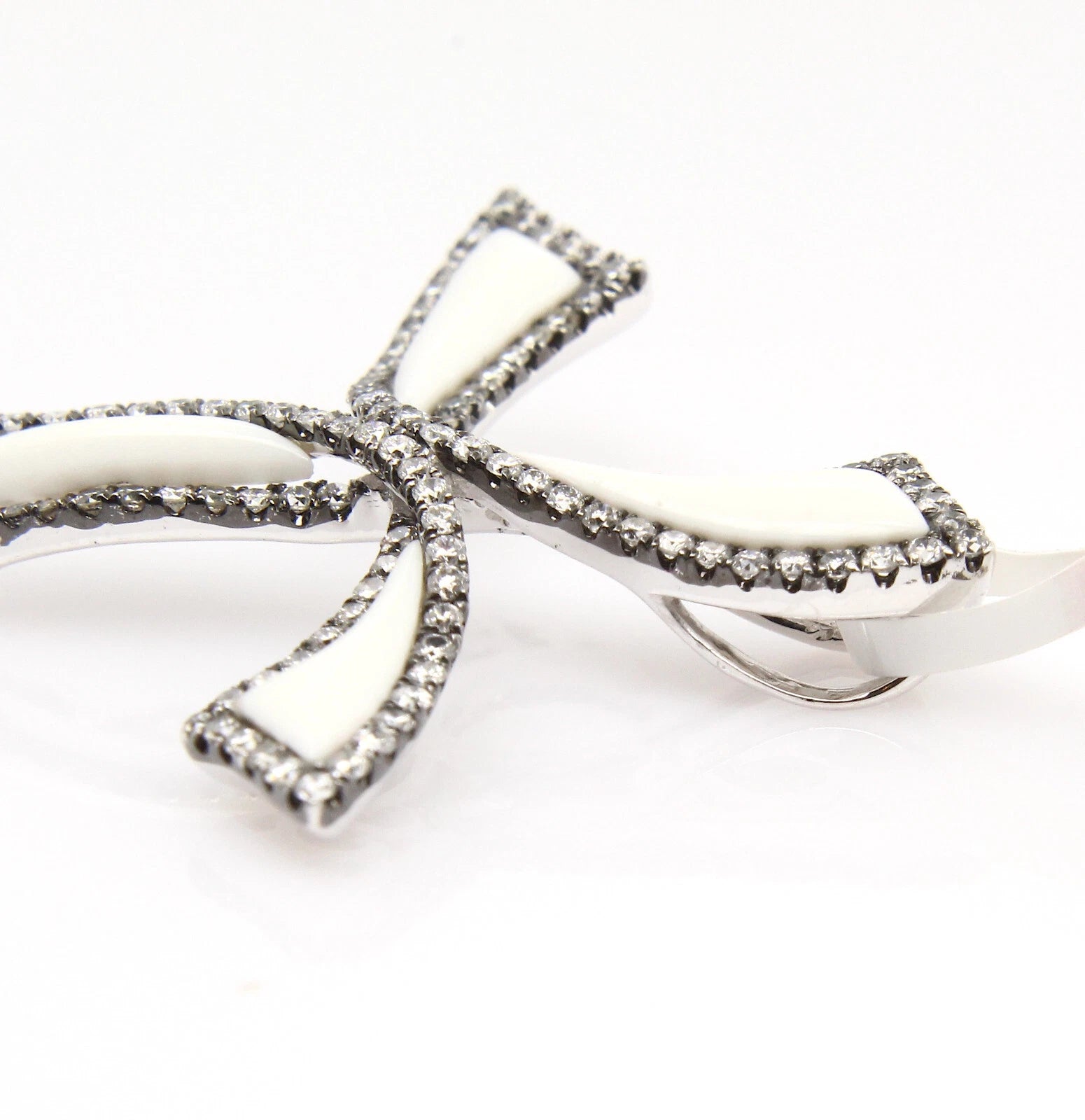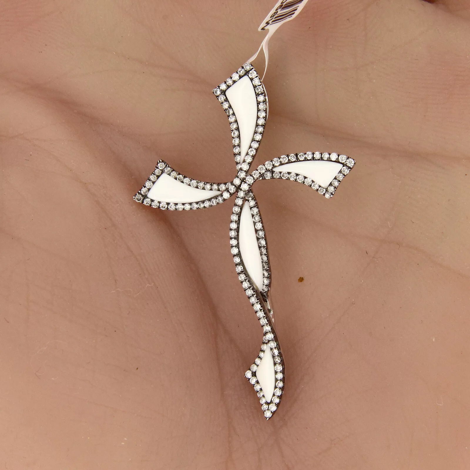Estate 18K White Gold Enamel Cross Black Rhodium Natural Diamonds 0.68CT Pendant