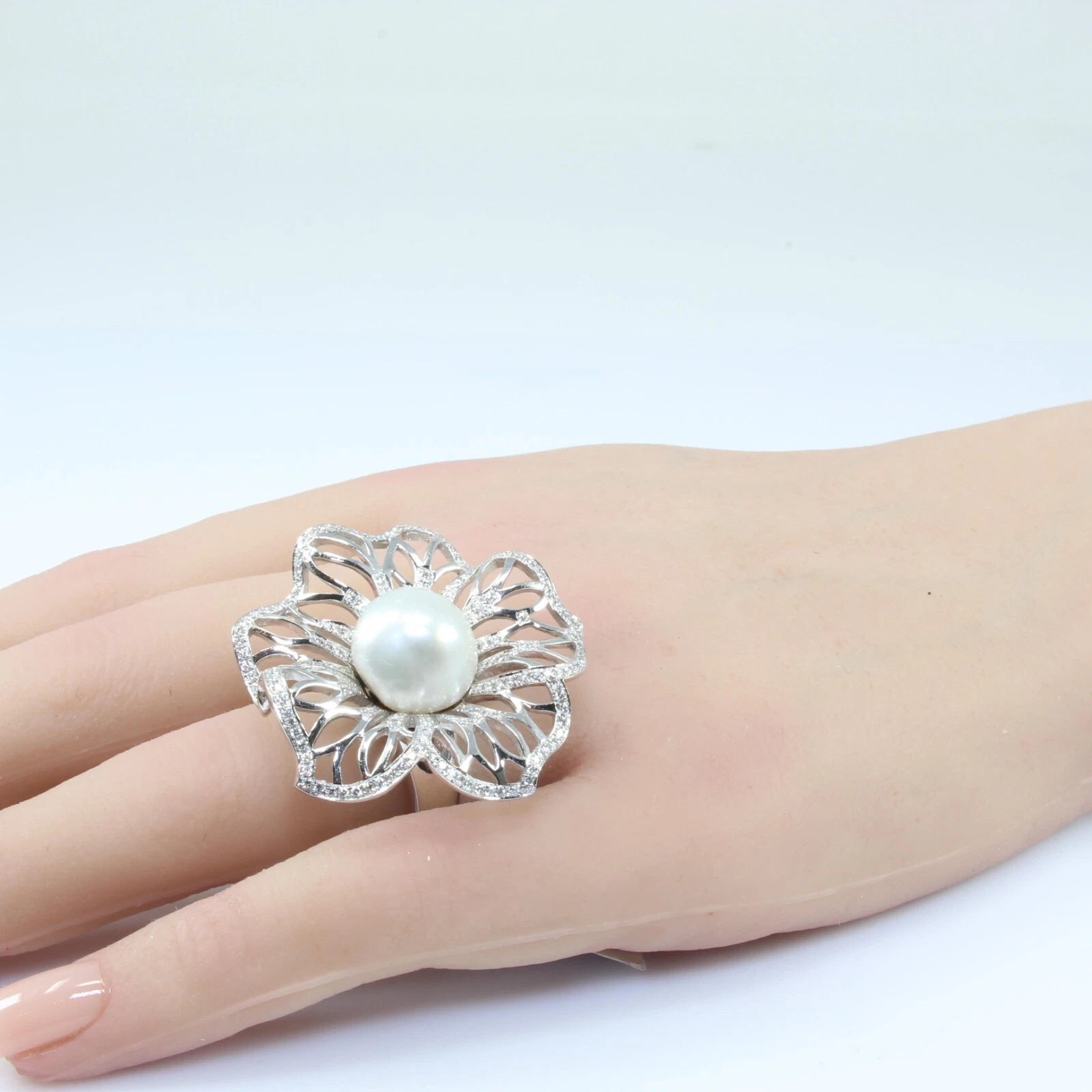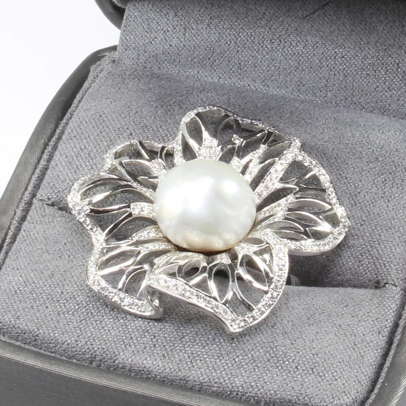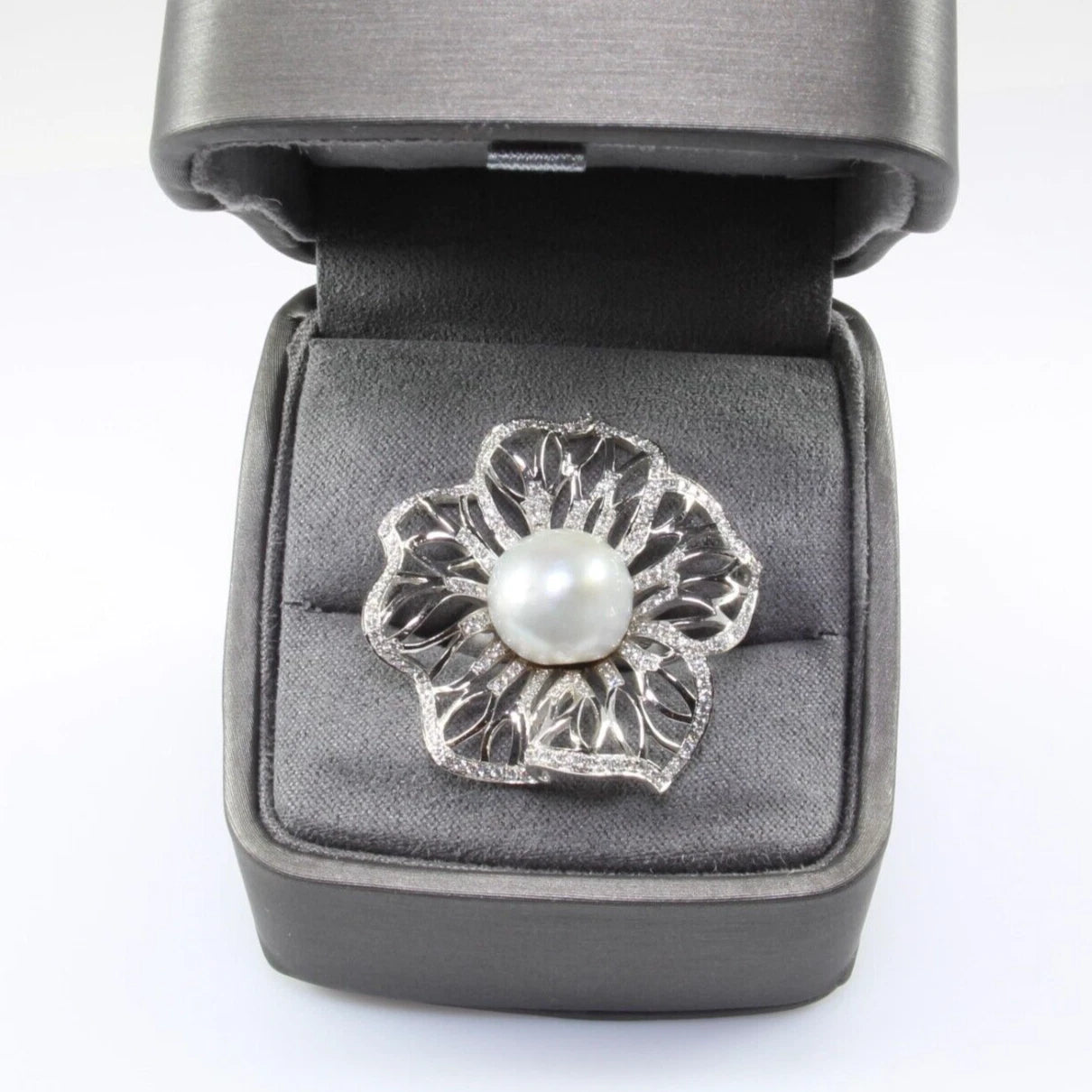 Estate 18k White Gold Southsea Pearl 1.35 ct Natural Diamond 18.1 g Ring Size 7